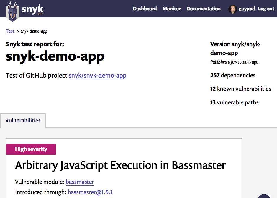 Find & fix known vulnerabilities in Node.js/npm dependencies