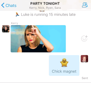 it's really nice to have a full-featured chat app (especially as a non-facebook-user). i'm especially a fan of the "running late" feature, since when I'm running late I rarely want to take the time to type a full message out!