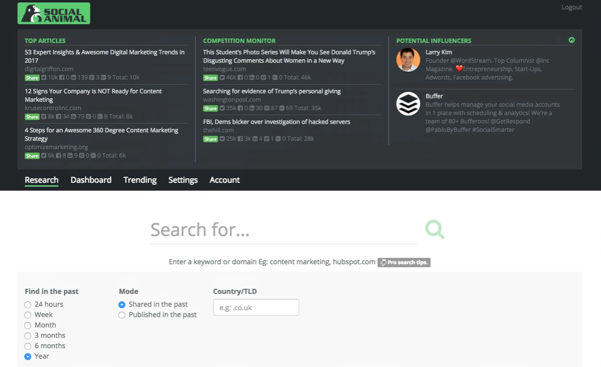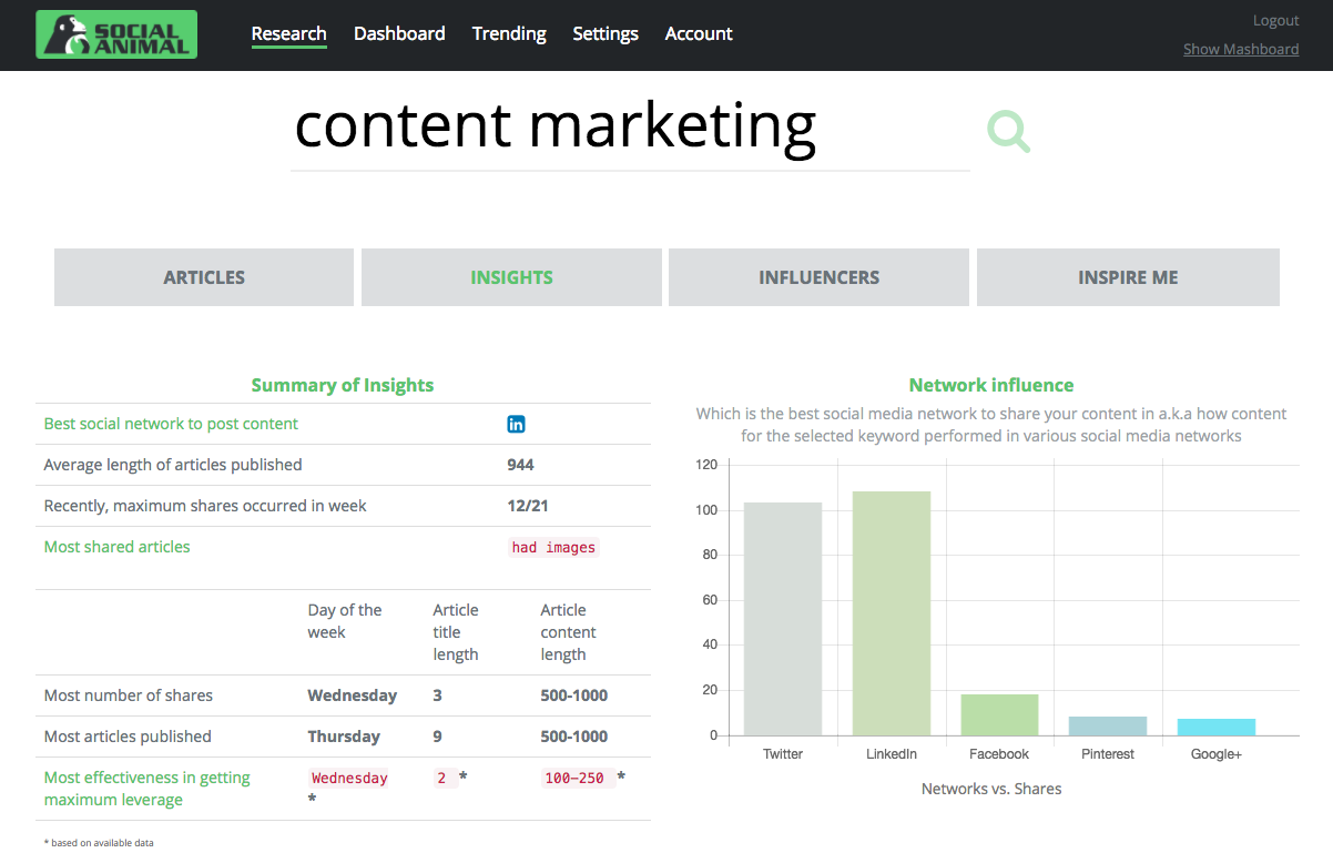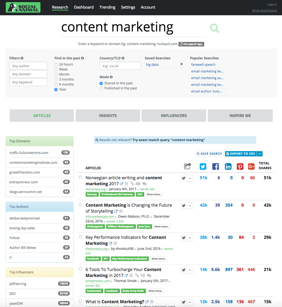 Social Animal is a content research product letting you deeply research top performing content for any given keyword. Social Animal gives you deep keyword insights with historical performance data and has a powerful influencer research tool. Very unique is, it’s InspireMe feature that applies a “human cultural map” to any keyword and lets you see unforeseen … See more