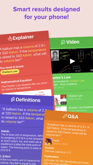 Trained on millions of sample homework questions, the app can accurately predict which concepts will help you solve your question. … See more