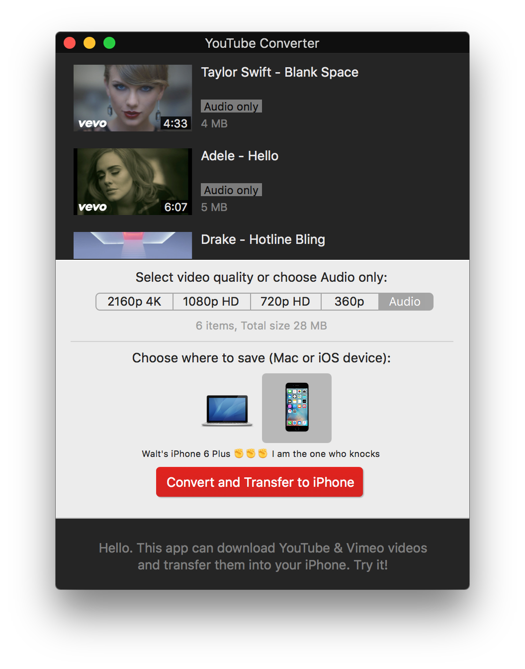A new app from the team that brought us WALTR. Based on WALTR I guess. A very handy tool to get YouTube vids and music on your iPhone. Fast and almost effortless.