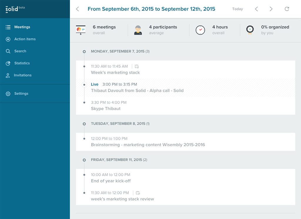 Solid looks like a simple integration on top of your existing calendar, to analyze meetings and keep them on task.