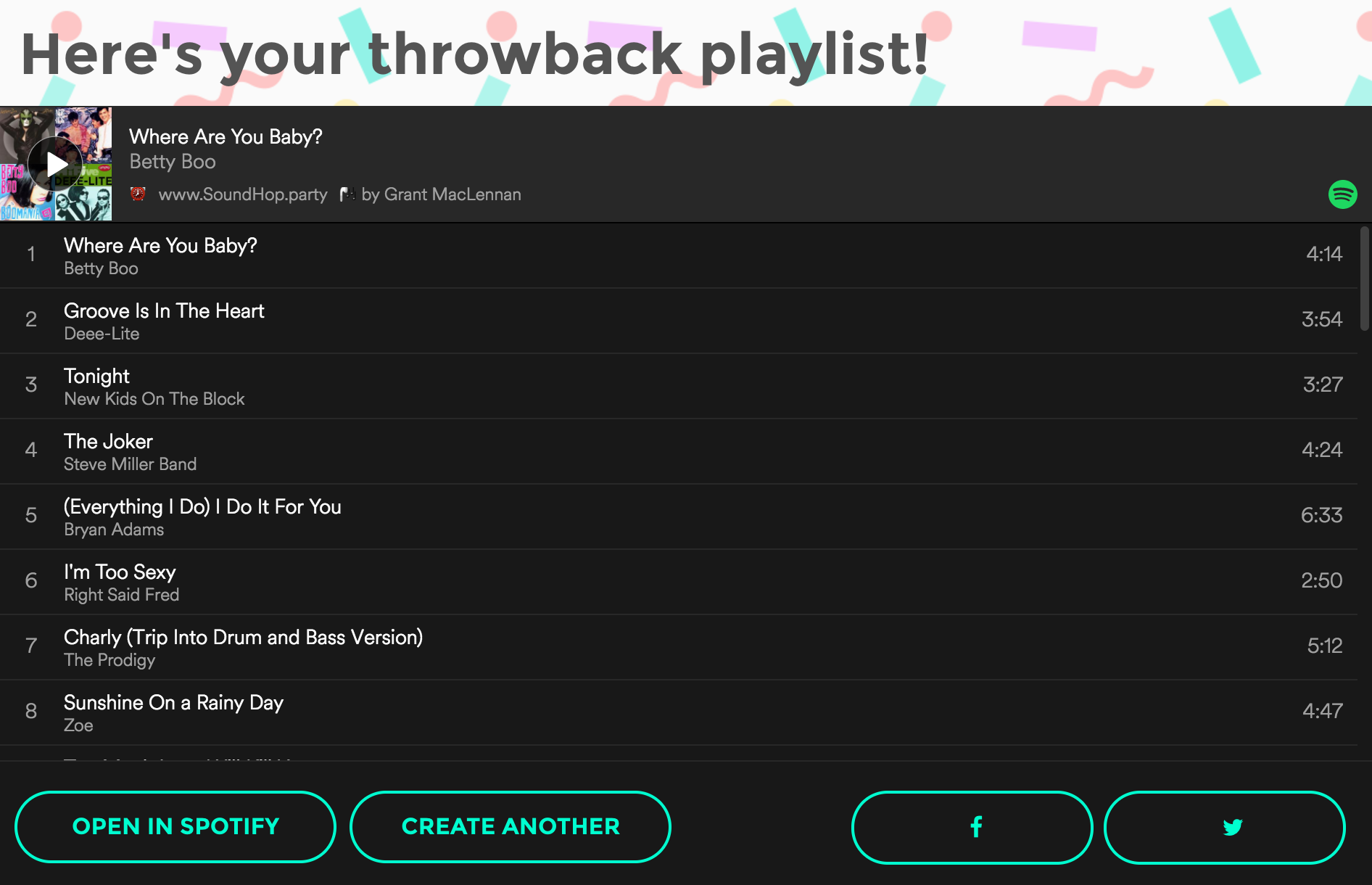 It builds you a Spotify playlist from the hits of this day in years gone past - then updates every week.