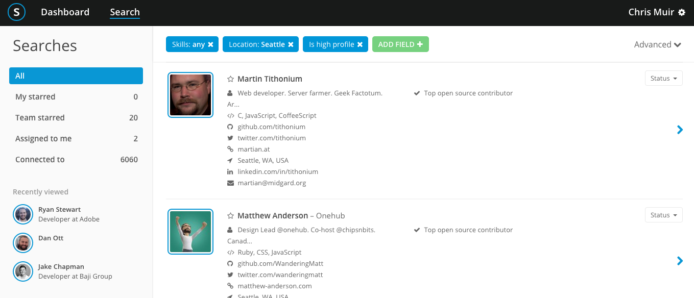 We’re excited to be here. We've indexed information about millions of engineers and give you the tools to browse and filter the data to find the perfect hire.