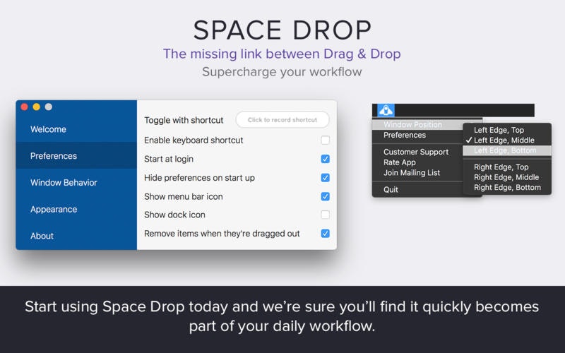 Why can't i change the default save-location with spacedrop? Also, how can i add a blurred background to space-drop? And why can't i preview files by clicking on an icon in space-drop? And why is there no file-preview of images?This is slower than Yoink.