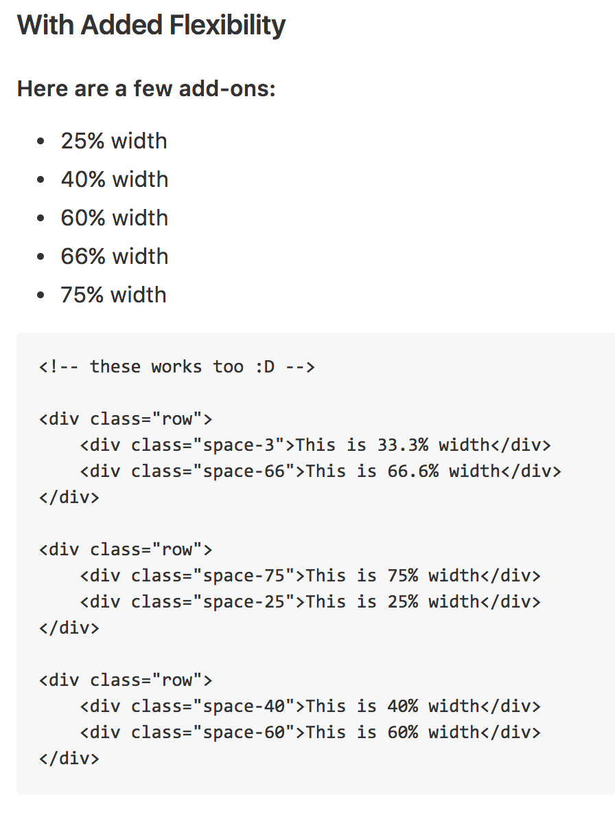 I was expecting a flexbox grid. It's 2017, and it's tiresome to use %-ages to define margins.