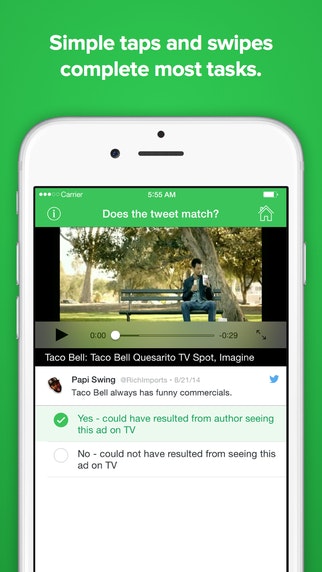 love the concept and the initial onboarding process. unfortunately, i'm stuck with no tasks to complete. maybe include previous tasks that were already done and offer a significantly smaller payout just to get people going? if you help them make $5 in 5 minutes immediately, you'll have them hooked and coming back for a while.