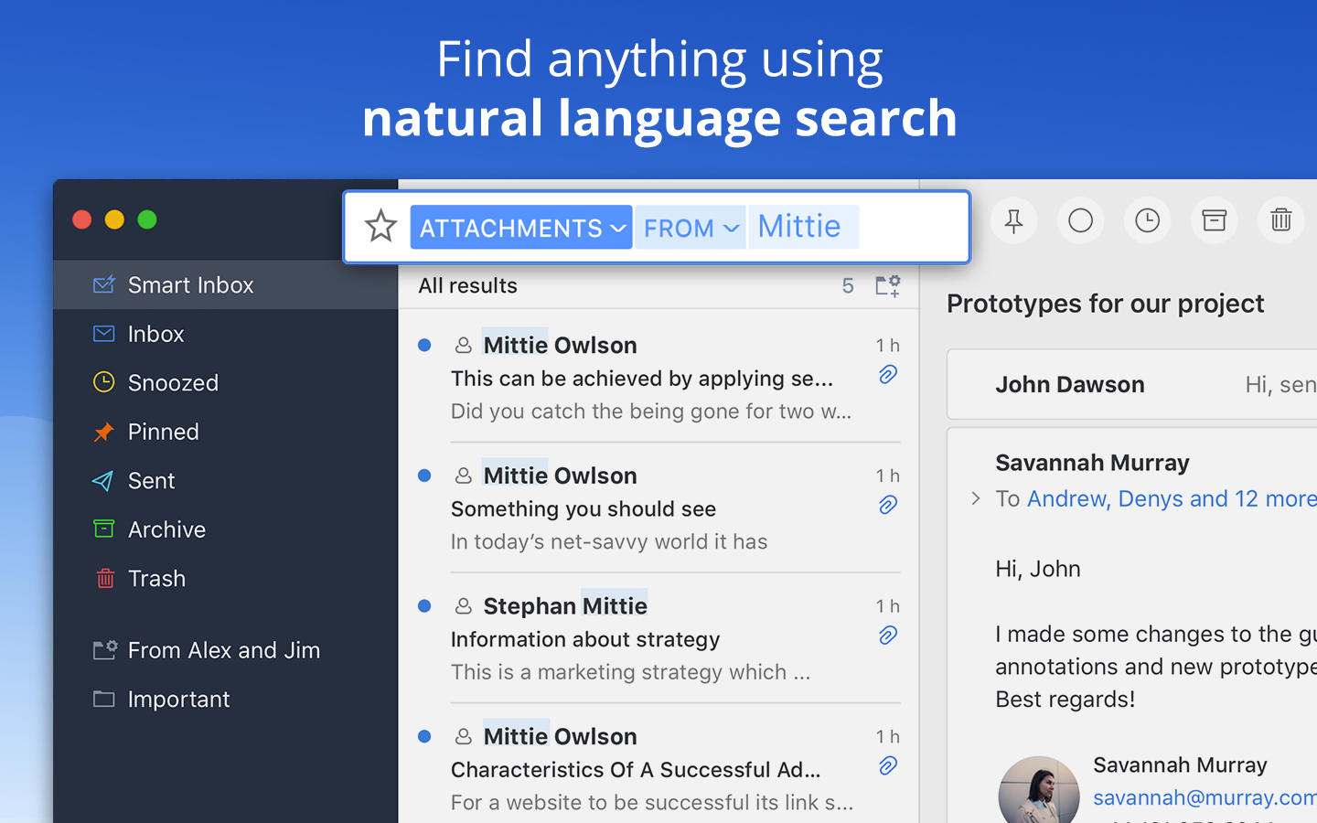 Spark helps you take your inbox under control. Instantly see what’s important and quickly clean up the rest. Spark for Teams allows you to create, discuss, and share email with your colleagues.