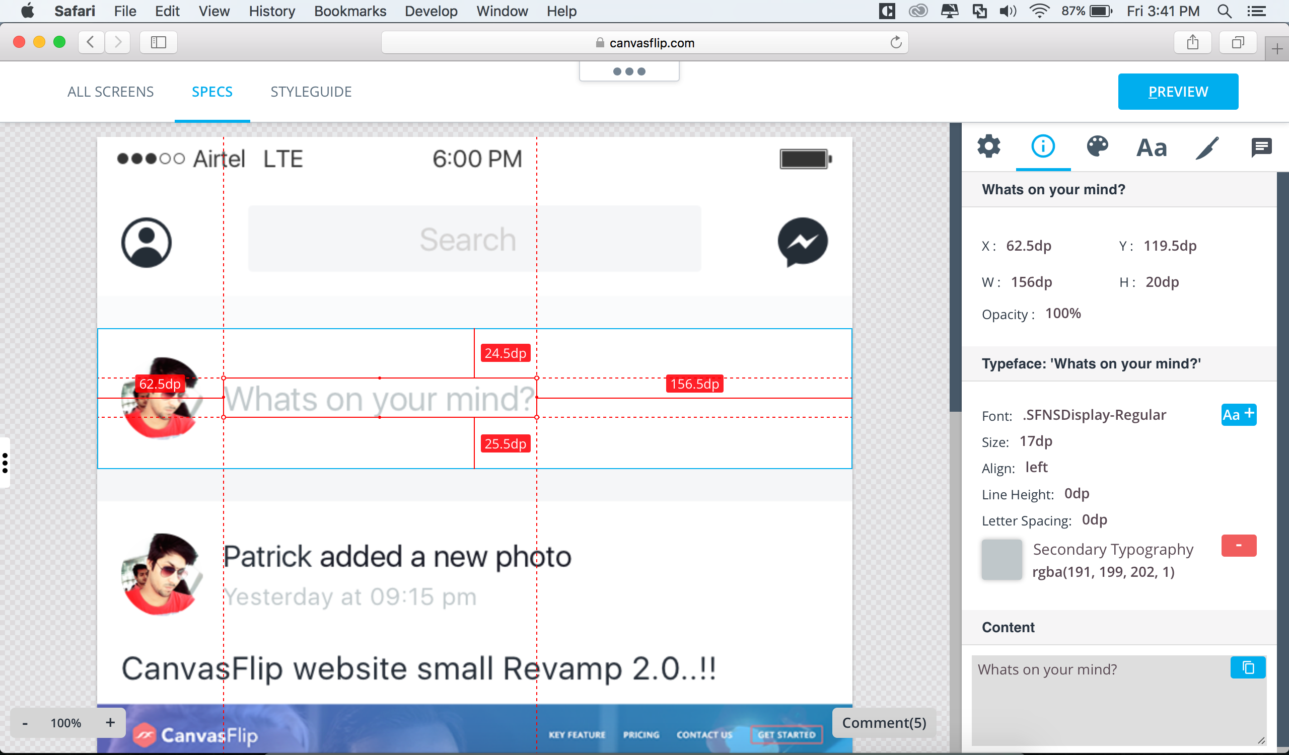 We're super excited to introduce the latest addition to the CanvasFlip suite - SPECS. We built this tool for all designers and developers for whom design hand-off is a long messy battle. Feedback from our users have been a great input to building this. Kudos to them! :) Using third party tools for hand-off came acro… See more