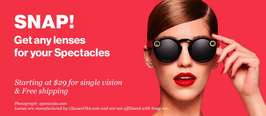 Only $29 for prescription lenses for your Spectacles. You can also turn them into regular glasses by replacing with clear lenses.