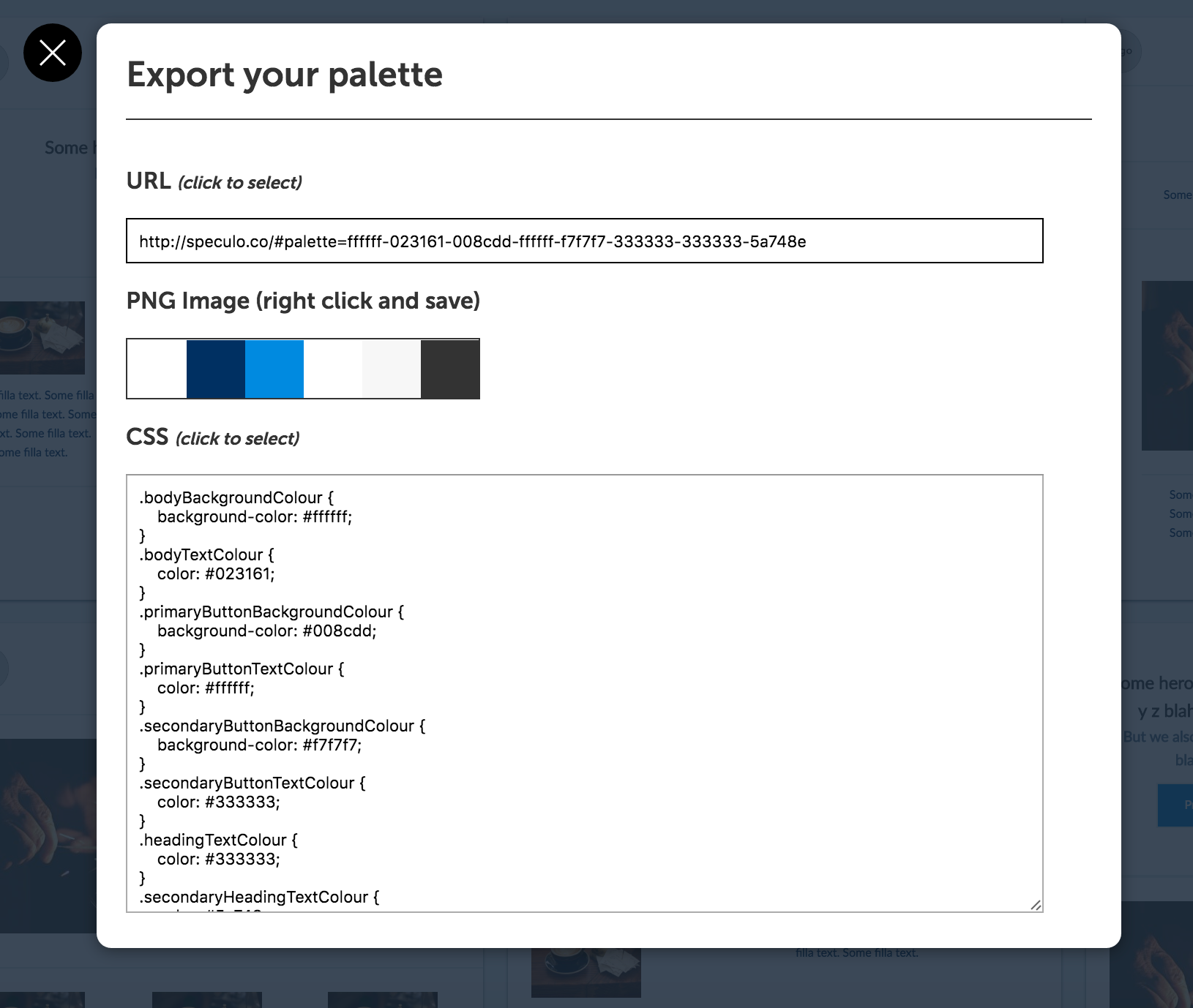 Colour palette visualisation