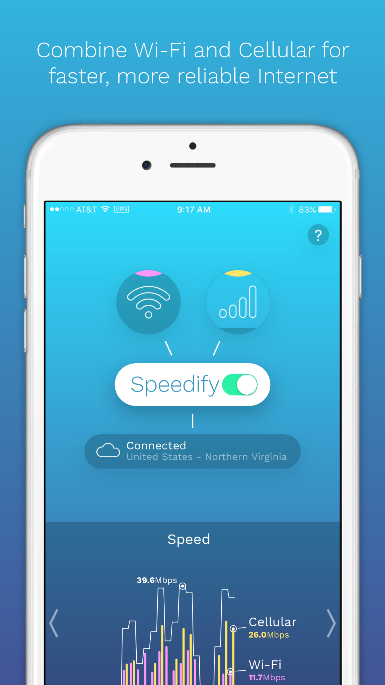 We're completely overhauled Speedify from top to bottom. A new user interface by Loren Brichter (@lorenb), speeds over twice as fast, full support for IPv6 and a new mode for mobile users: Redundant Mode. When activated, your data is sent on both Wi-Fi and Cellular. So important VoIP calls, and live video streaming events don’t get interrupted, no matter wh… See more