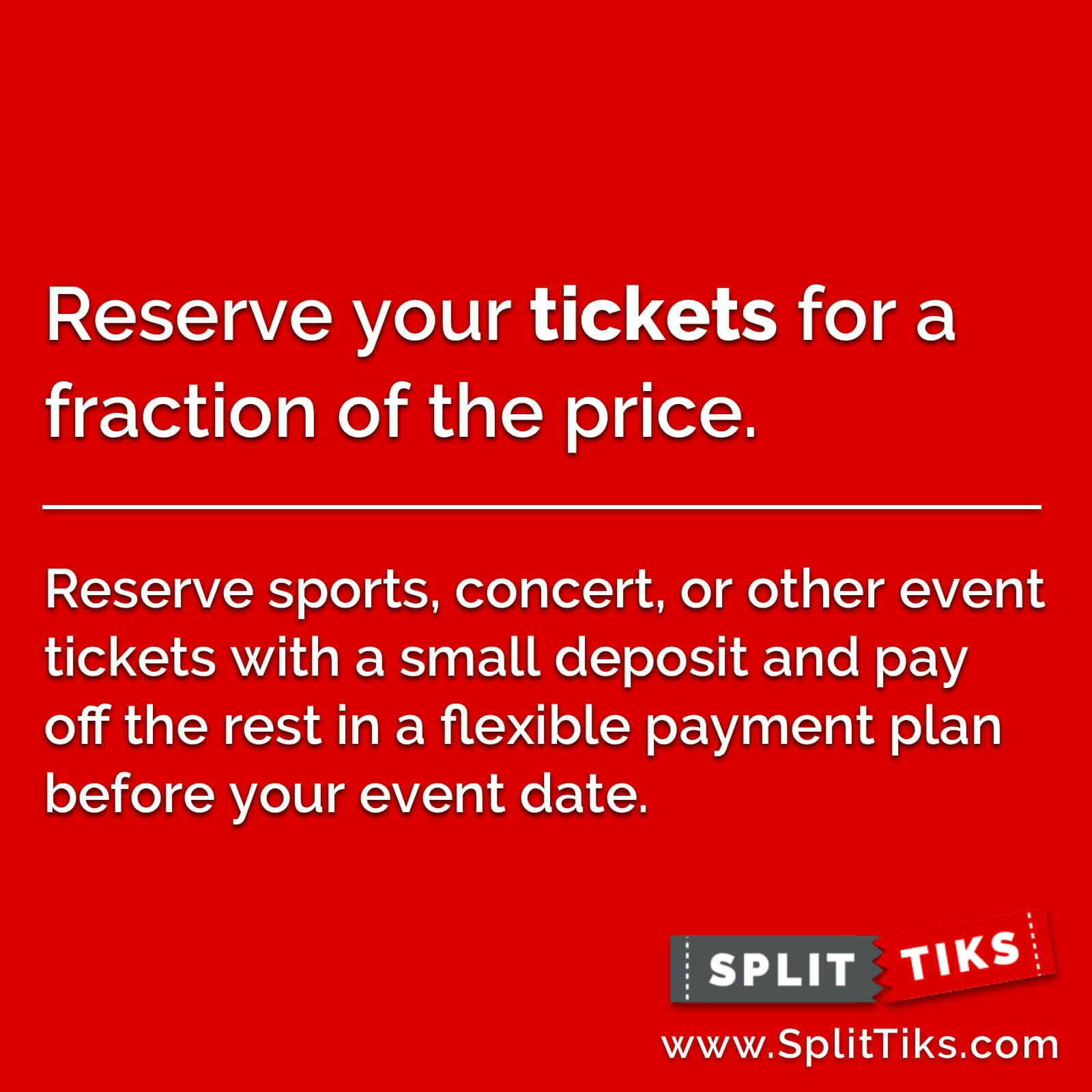 Hi everyone and thank you for this opportunity! My name is Ross and I am one of the founders of SplitTiks! Our mission is to make events more accessible and affordable by allowing people to reserve their tickets at a fraction of the price and pay off the remainder in a flexible payment plan prior to their event.