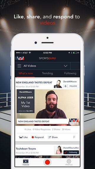 I'm one of the founders of SportsGuru. Our app allows fans to easily record short videos of themselves with their reactions, opinions, and analysis on sports. We instantly make the videos look more professional and fun by adding automated on-screen graphics, user rankings, and other interactive features.