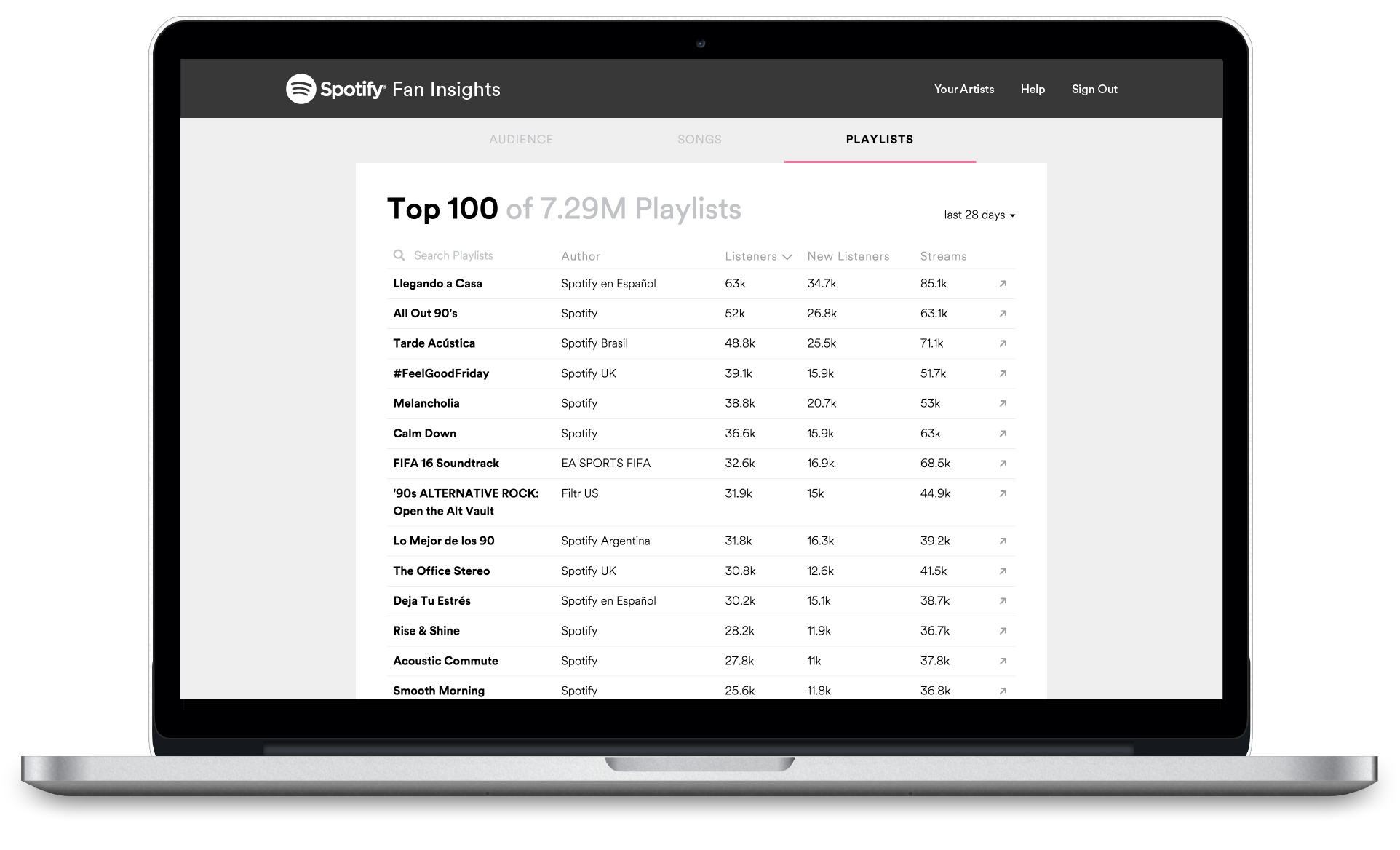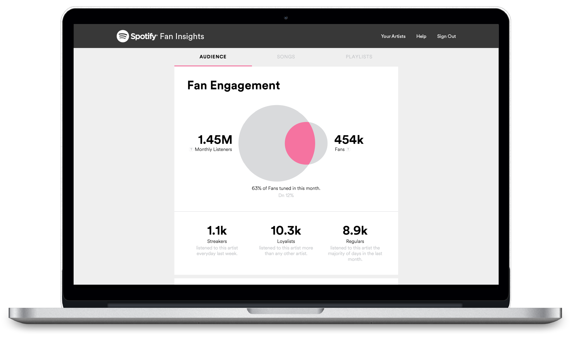 We've been working hard on Fan Insights and refining the product based on feedback from a small group of artist and manager alpha users. It's great to start to get more feedback on the product now that we're in private beta and publicly announced. If you're an artist or manager and want access, request access here: https://artists.spotify.com/fani...