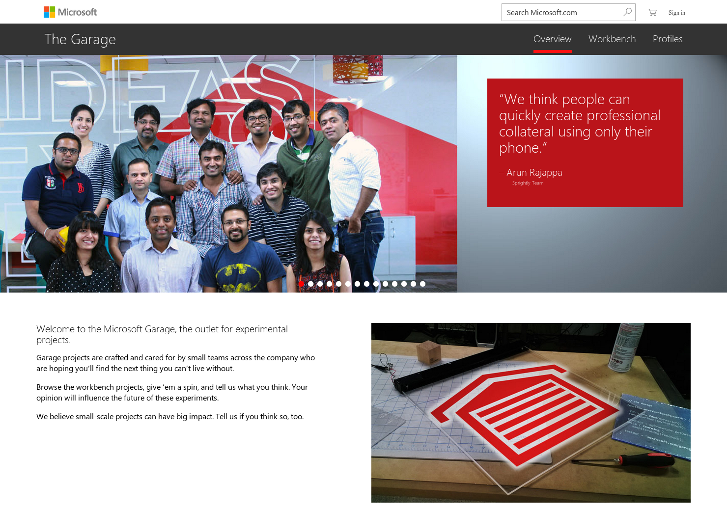 Sprightly is one of many new Microsoft Garage projects. This Android app lets users create sharable visual content about their products. They offer a "collections" feature that stores the text and visuals used for easy reuse.