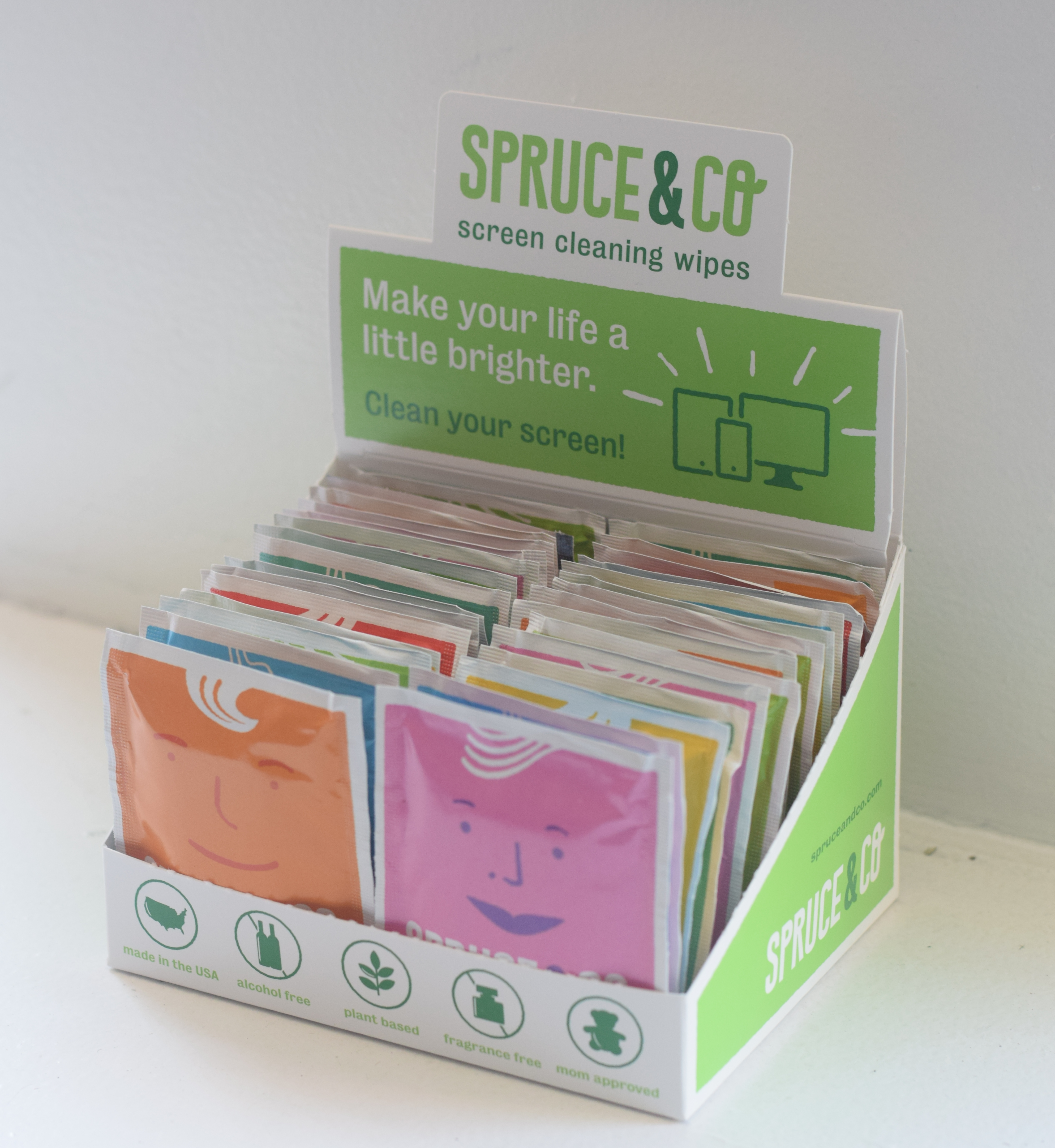 We started Spruce & Co to enable everyday healthy routines and help keep the grimy devices we're glued to all day feeling clean. Our wipes are derived from palm and coconut oil, made in the USA and are alcohol, ammonia and fragrance-free. Thanks for checking out Sprucies!