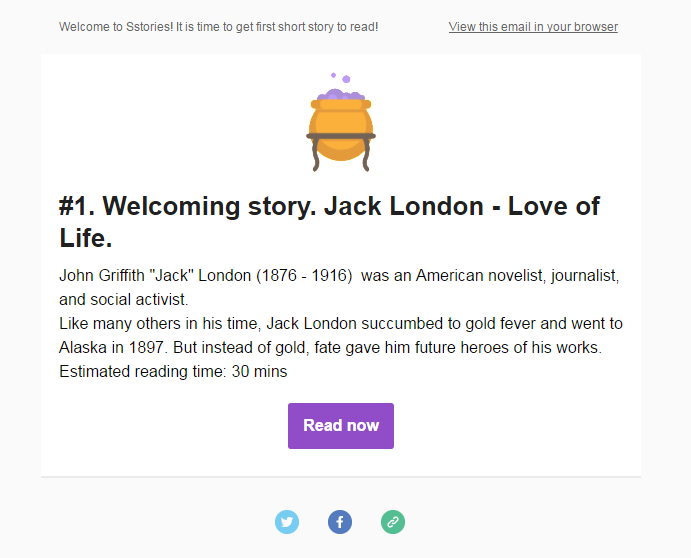 Hello everybody! Here is my first project on producthunt. It’s designed for busy people, who usually don’t have time for fiction books or for those who is learning english. I want to remind people the importance of good exciting stories and show that it is not so time-taking to dive into this!