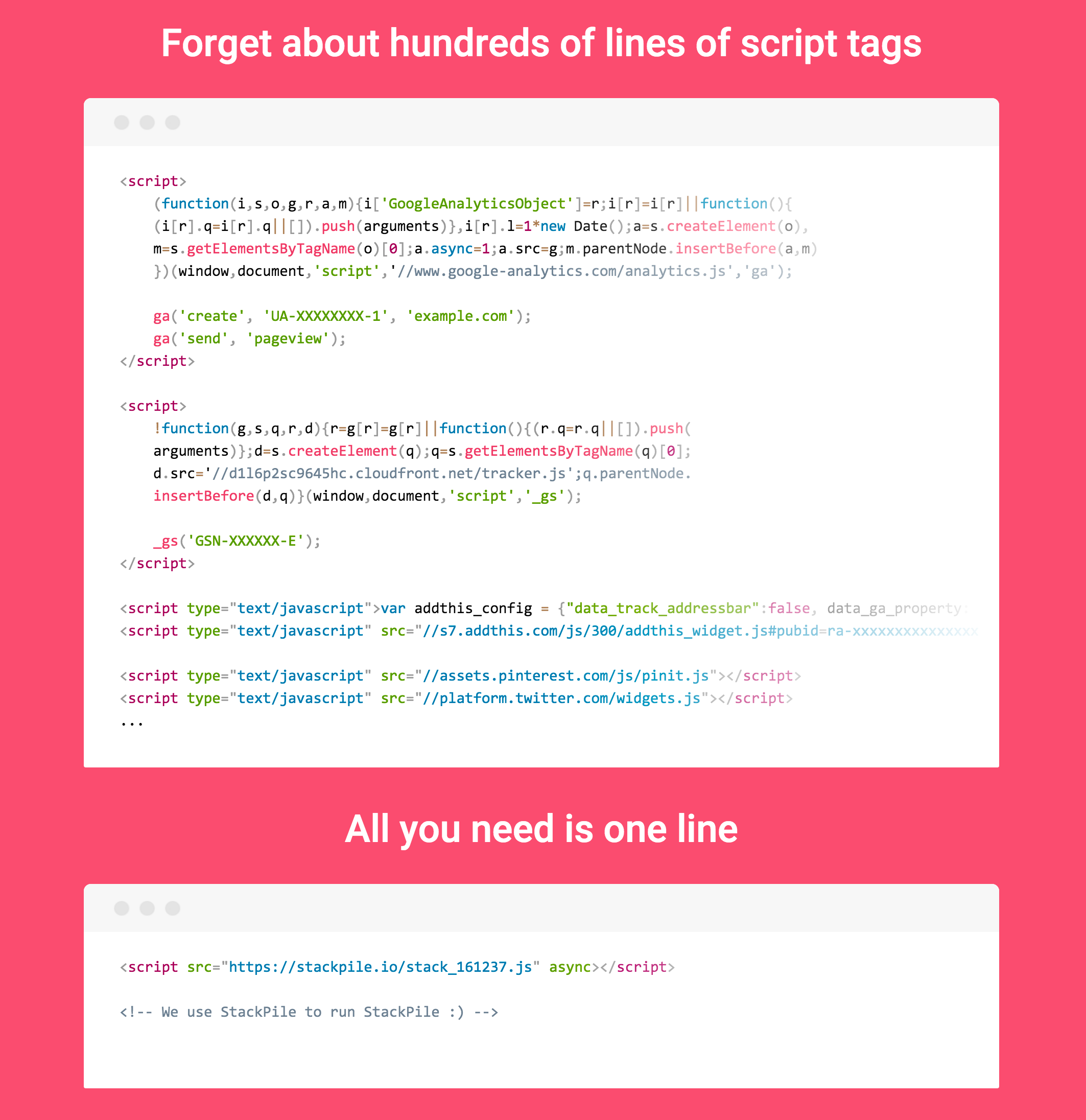 I started building StackPile a couple of months ago when I needed a quick and simple solution to try 3rd party apps in a few sites I was building at the time. Up until then I was using Segment (which is awesome btw), but for some of the sites the high traffic would mean… See more