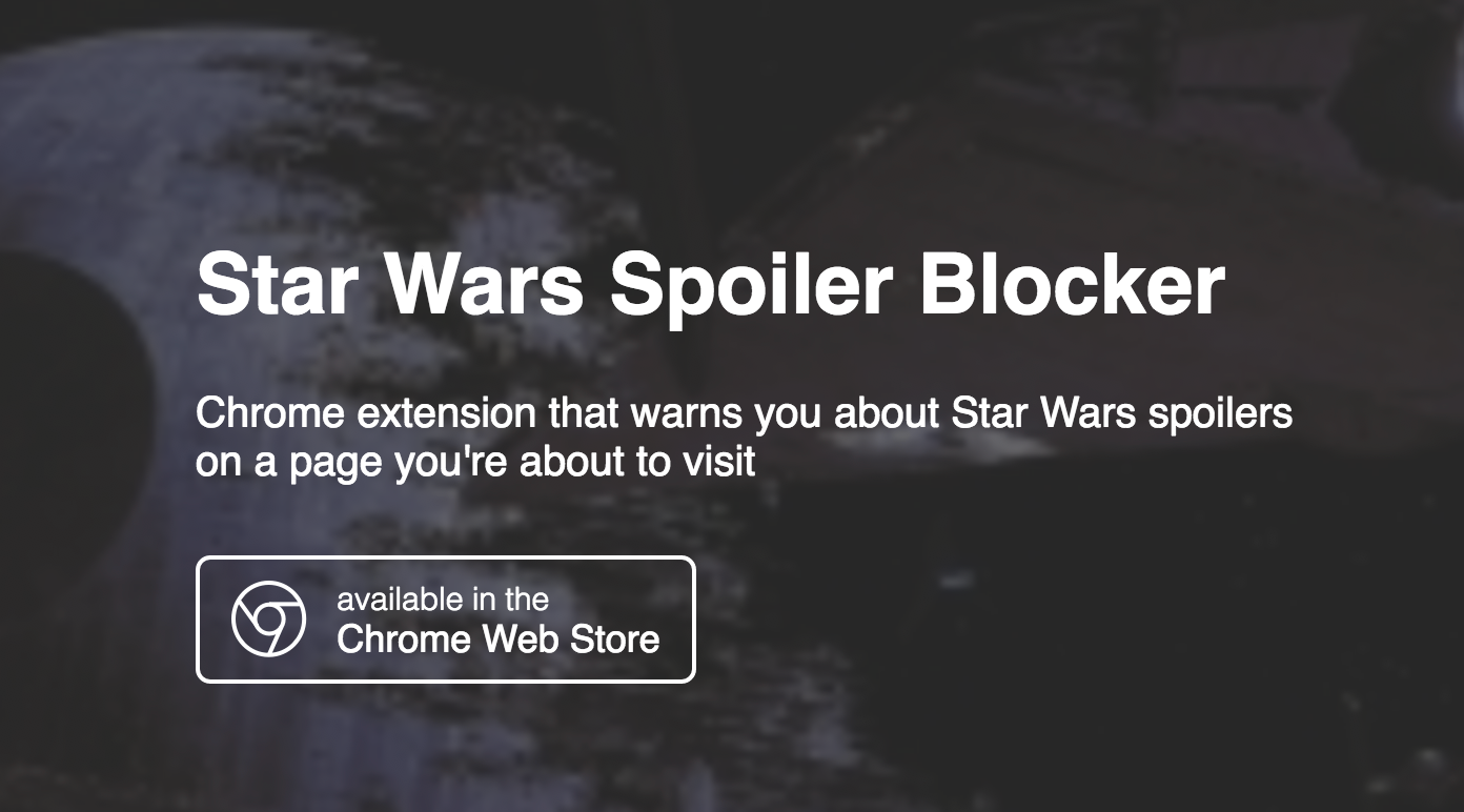 Since we are so close to the new Star Wars movie, it's going to be tough to avoid spoilers in the coming weeks. We've made this little Chrome extension that warns you about potential spoilers on a page you're about to visit. Would love to hear your thoughts!