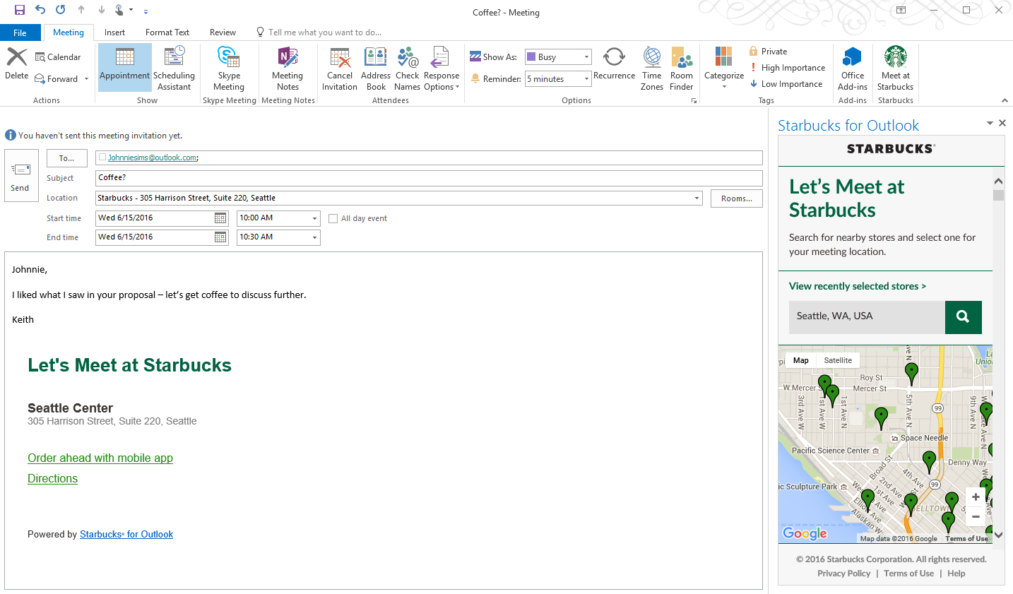 Starbucks for Outlook Add-In
