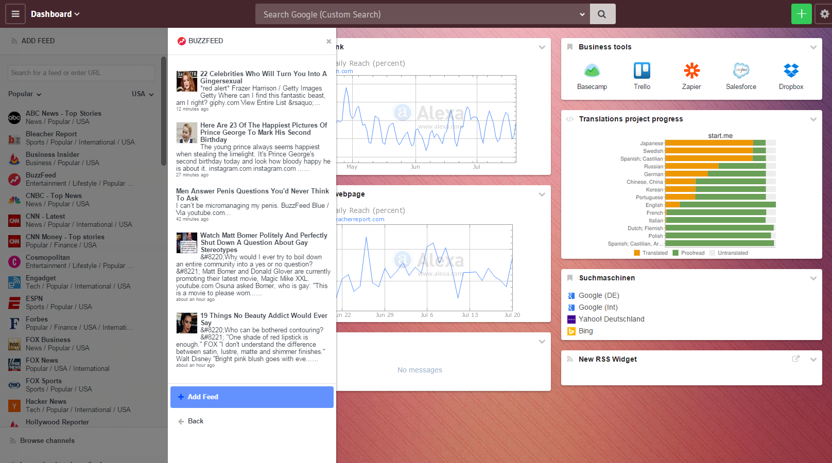 I've been using this for a while and they just did a big upgrade. They've really done a nice job letting people customize their new tab with links, rss feeds, widgets and more.