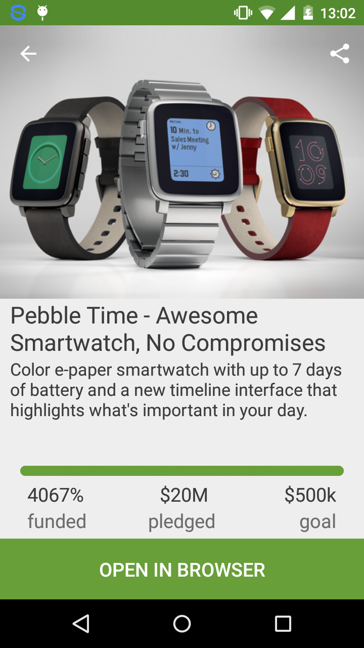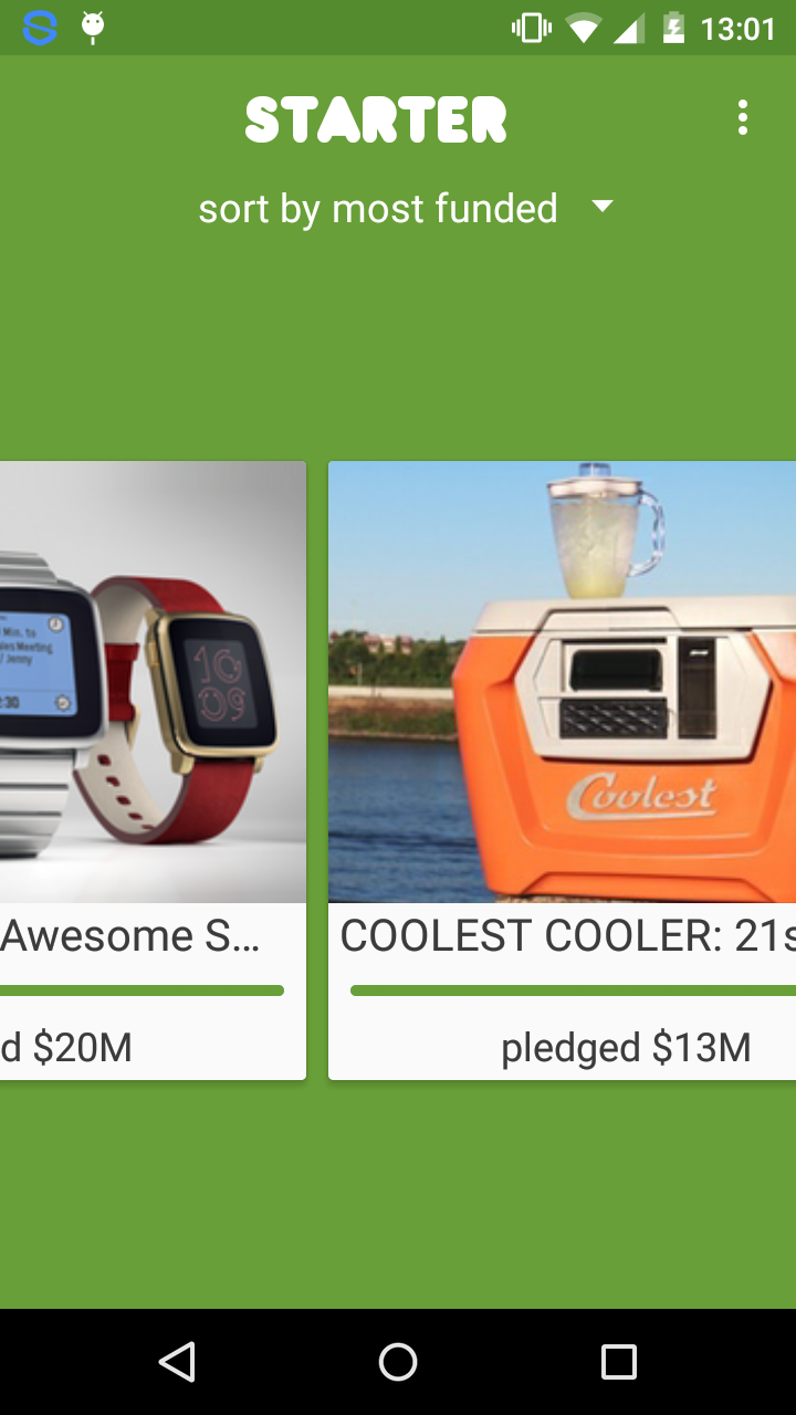 I've just published the open-beta of Starter for Kickstarter. It is an unofficial android app for kickstarter where you can browse and share projects on kickstarter. Just download it from the play store and have fun with it!