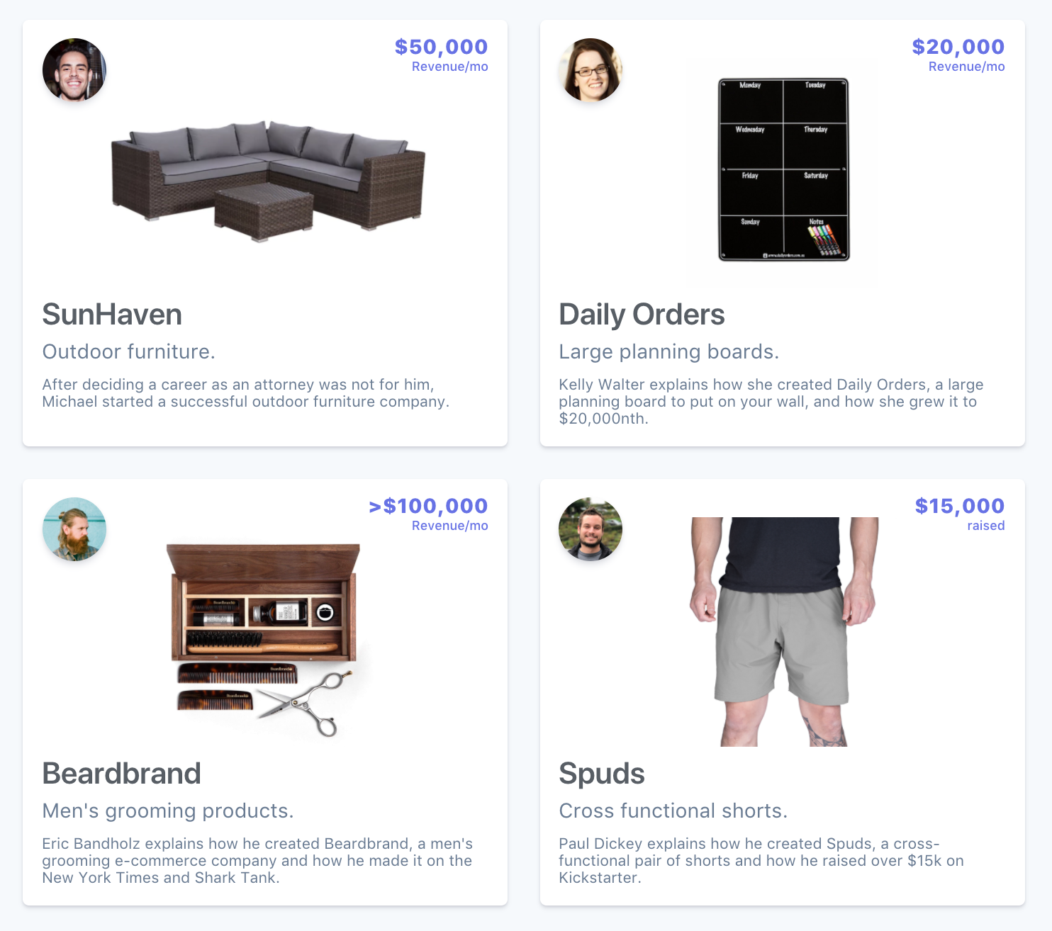 These businesses share their revenue, how they came up with their idea & built the product, and how they grew their business.