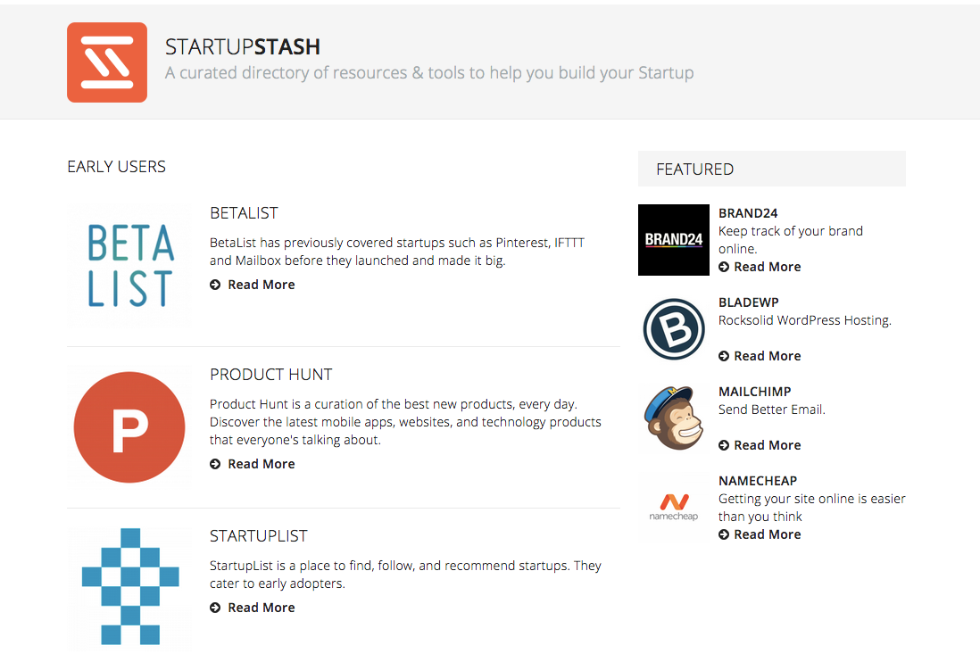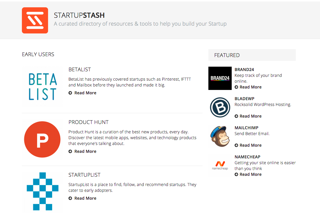 Startup Stash is a curated directory of resources and tools to help you build your startup. It includes 400 products in 40 categories, like for example: Idea Generation, Early users, Marketing, Raising Capital and Customer support. Each category consists of 10 handpicked resources and tools, all with their own detail page that displays some info about the pr… See more