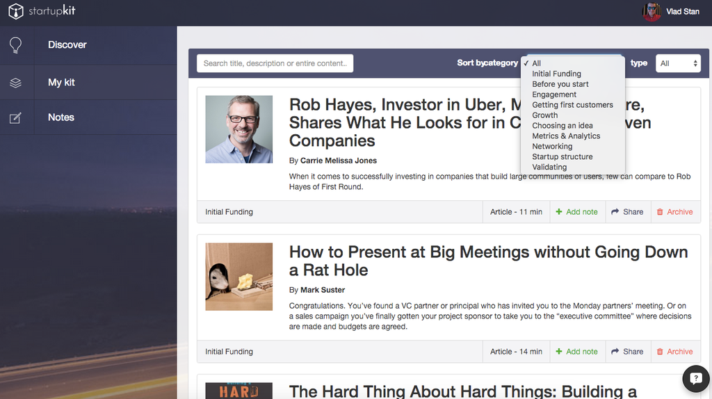 Interesting pivot of Startupkit, from tools to knowledge - @vladstan can tell you more!