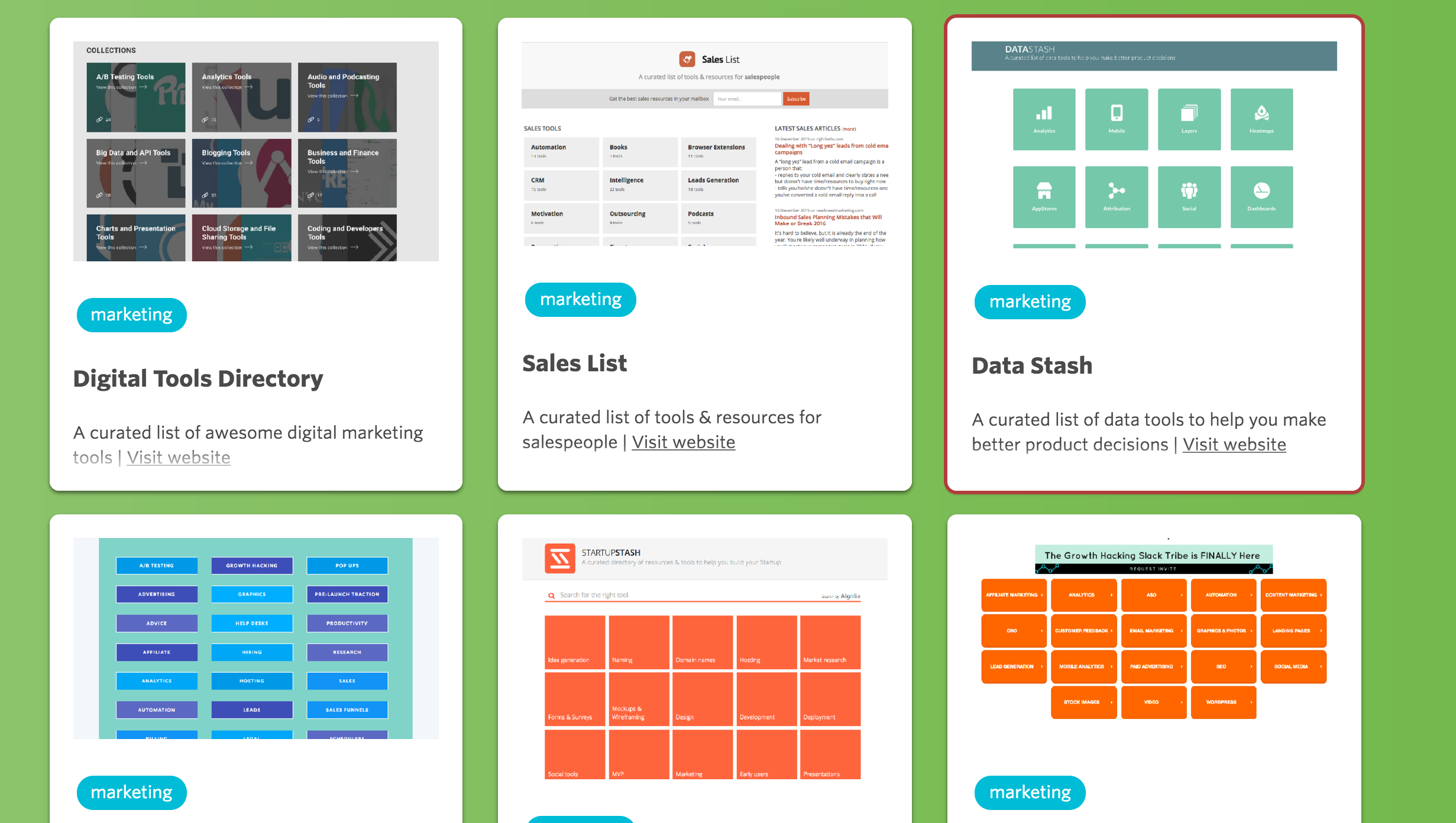 Stash of List is a curated directory of all stash & lists (inspired by Startup Stash, Marketing stack, etc..).