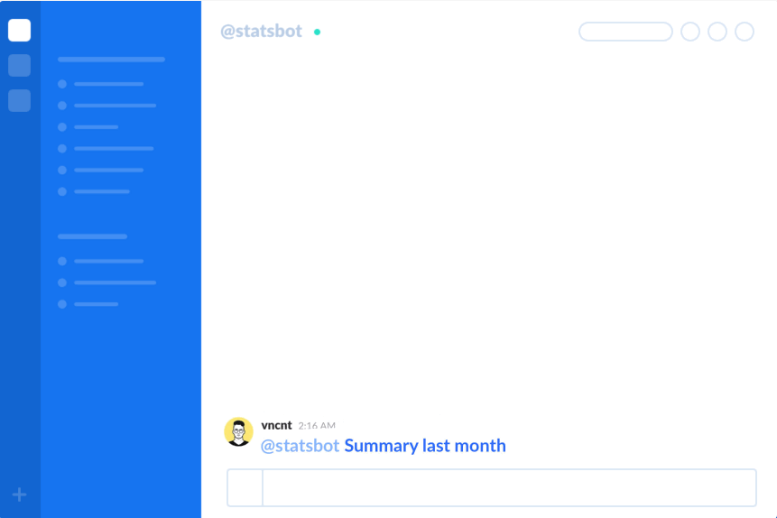 Statsbot is a powerful Analytical Companion for your Slack team. It’s already works with Google Analytics.