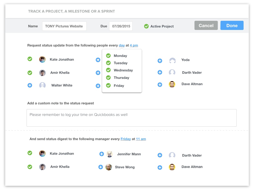 It looks as a very nice product that will really help managing the team, but I couldn't register. The sign up process was very difficult. I received the Email confirmation, clicked it but nothing happened and I couldn't enter the website. At that point I left. Will try letter on to deal with it.