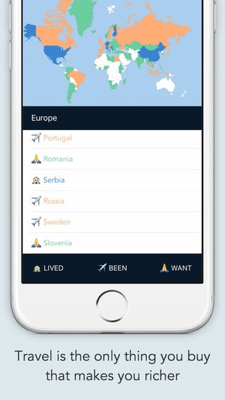 I once similar app, entered the countries I've been to, those country maps turned red. Suddenly, I felt I wanted to go to Russia. I never wanted to go to Russia before, but it this case, it would color a good portion of the world map red for me. So, I deleted the whole thing. 🙈