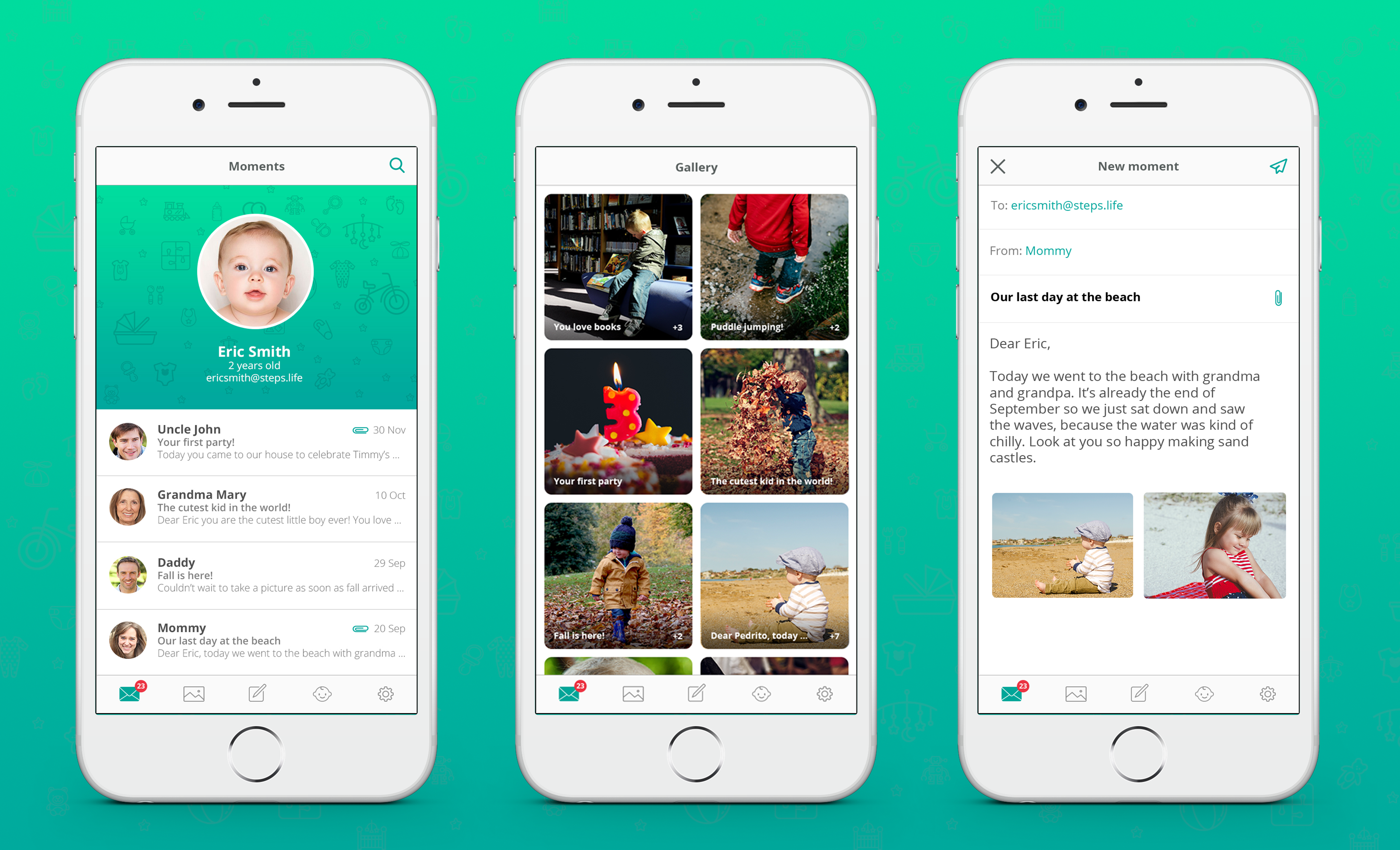 Hi there! Thanks for sharing and checking out StepsLife. We're really excited to launch it today. Our main purpose is to be able to safely keep our children memories in a single place. That is, being able to write them messages (with any media attached) that will be read when the child grows and is mature enough to discover those early years he/she has no memories about (because of something called childhood amnesia).