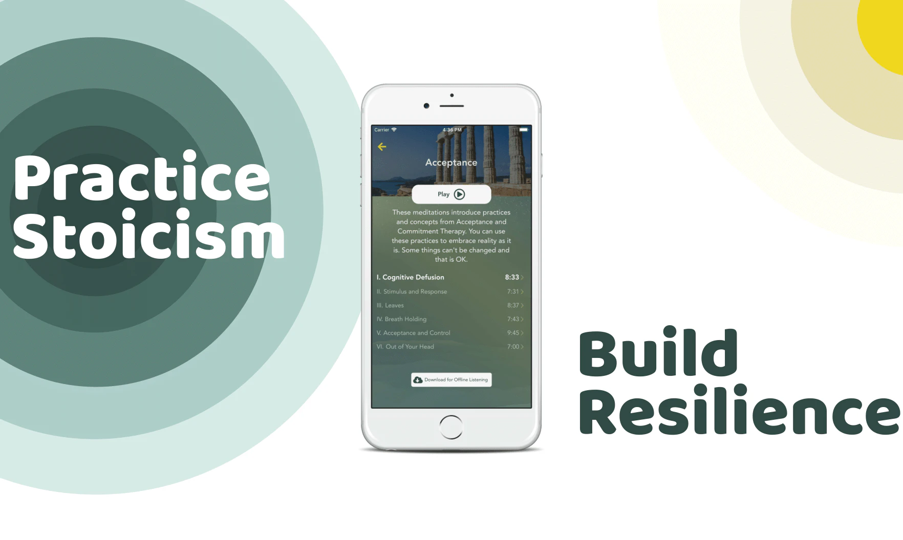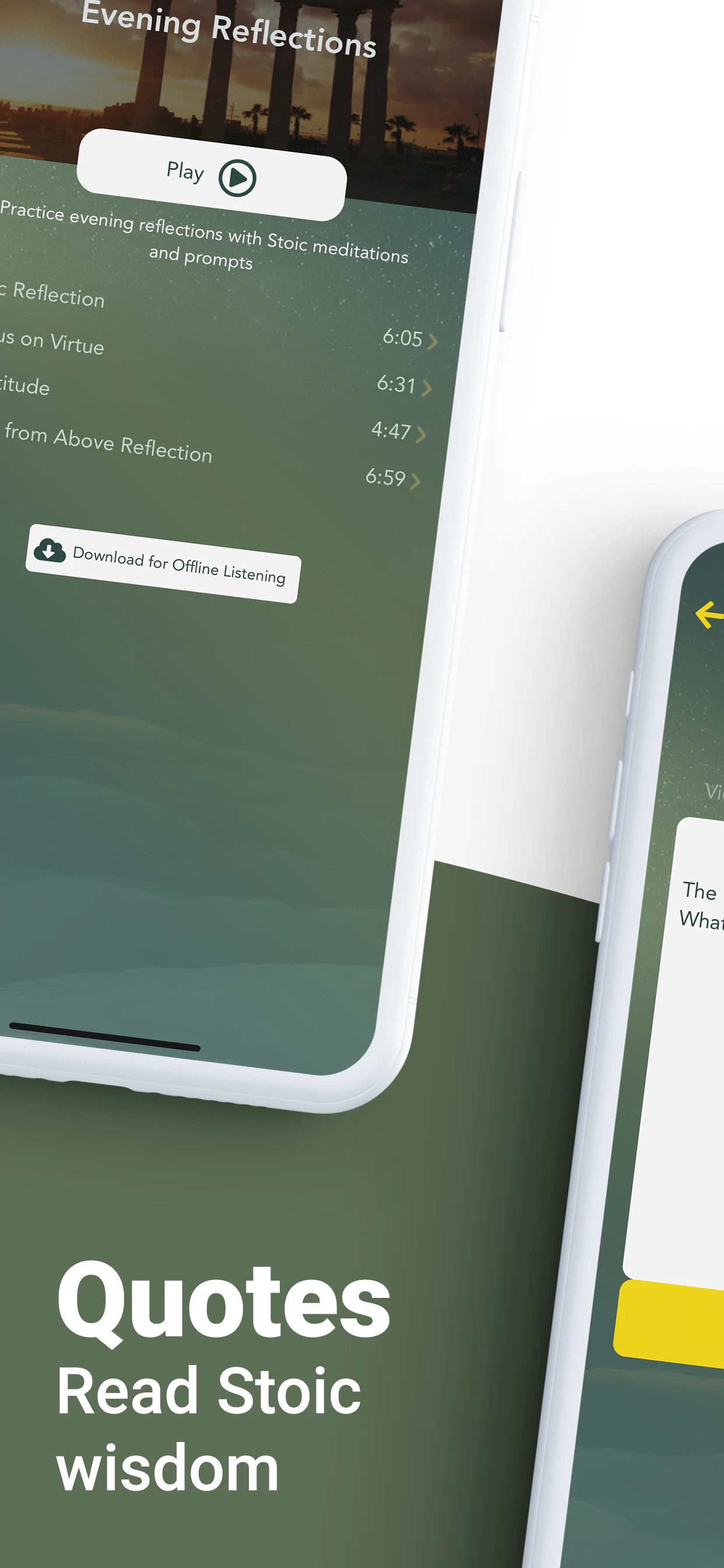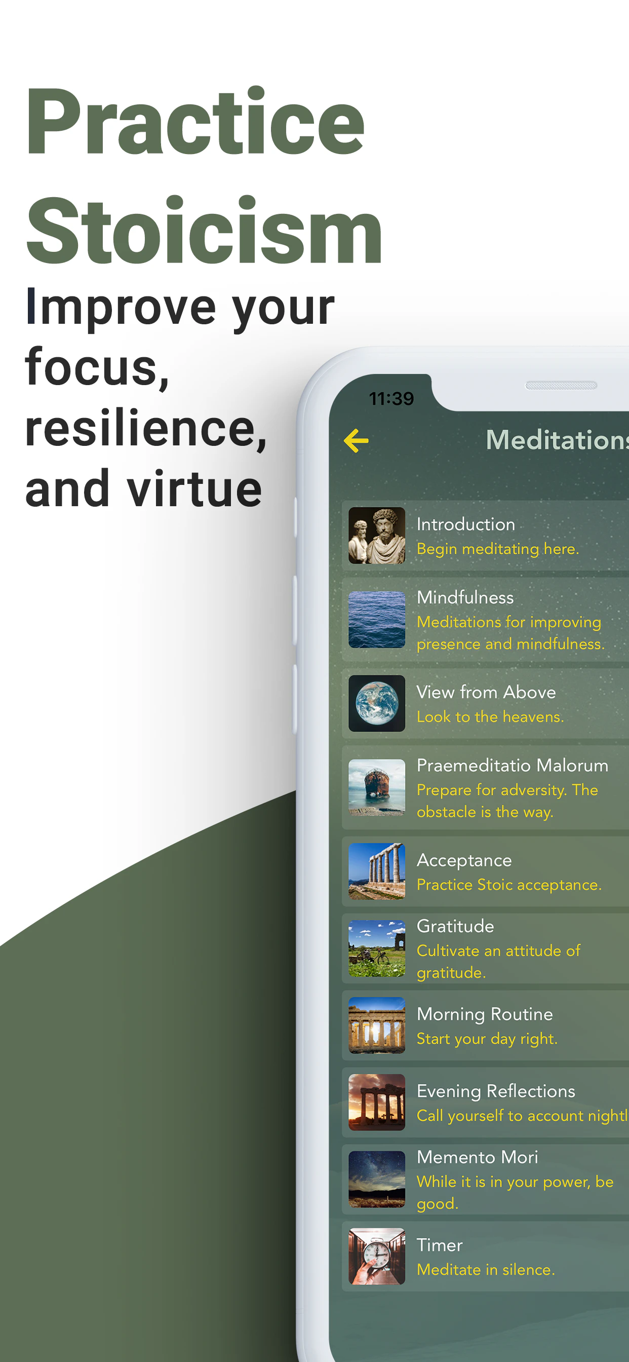 Stoa is a meditation and journal app grounded in the ancient Greek and Roman philosophy and contemporary therapy (CBT, ACT, MCBT).
