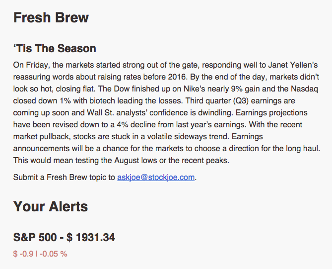 Stock Joe simplifies everything you need to know about the stock market into a brief morning email. These emails contain a summary of the previous day’s events and custom portfolio alerts. There are also lessons for those who have never invested before.