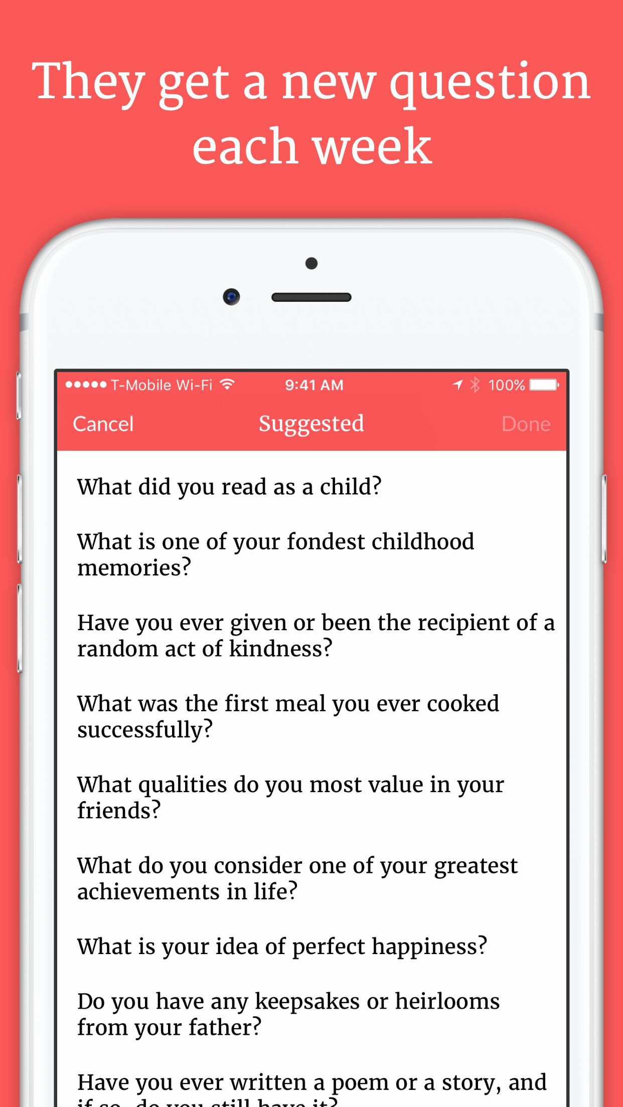 My family has been using StoryWorth since I gave it as a Christmas present last year. The value of this product really is priceless and it's something you'll realize as soon as those first stories start coming in from loved ones. It's a lot of fun to read about different memories my brothers have from growing up or to learn about my mother's grandparents (wh… See more
