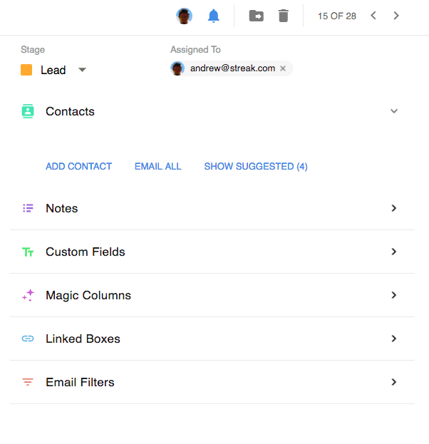 Most CRM's do contacts terribly, Streak lets you create Contacts straight from emails, automatically enrich them with useful info (like title, company, phone number… See more