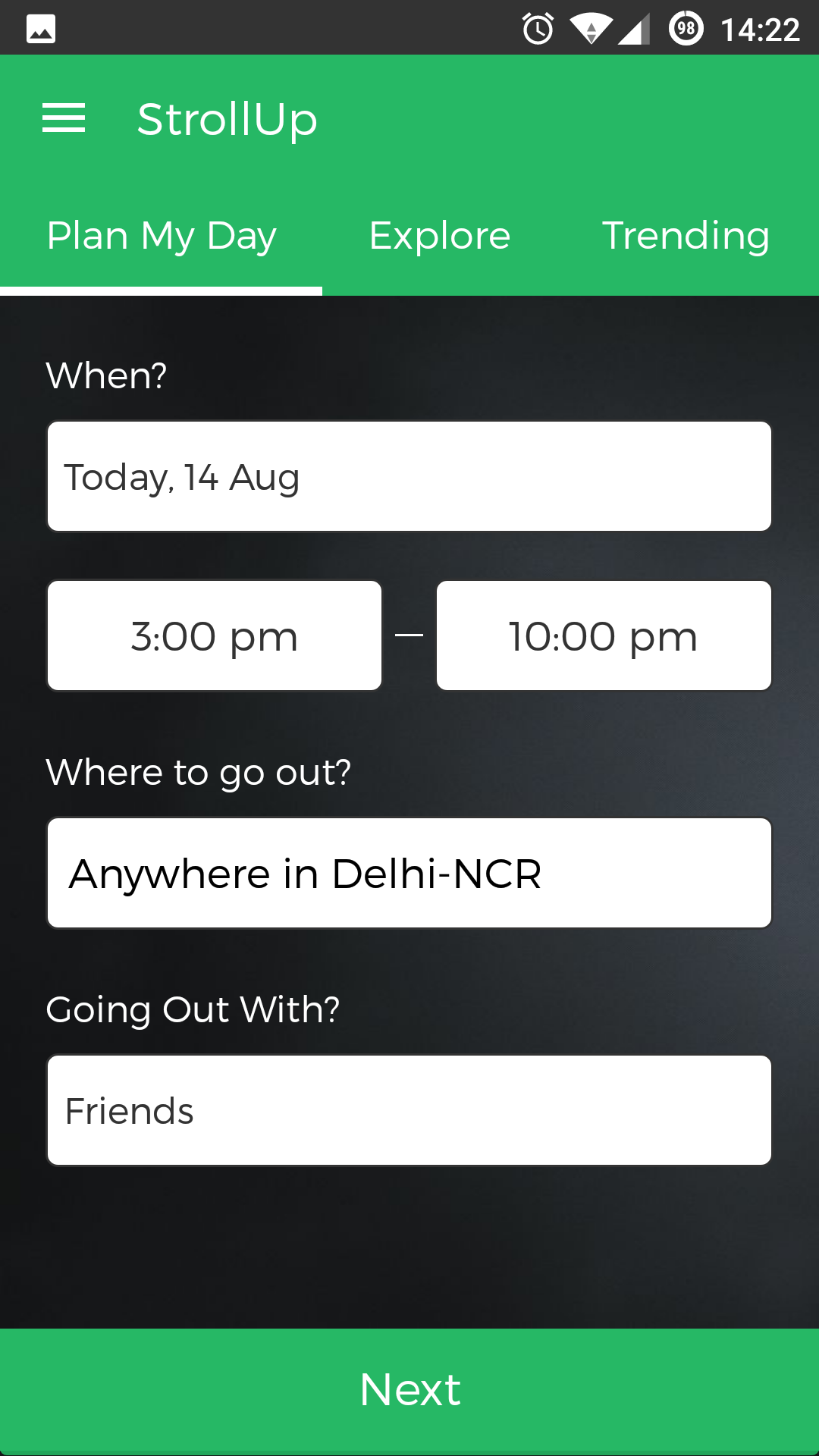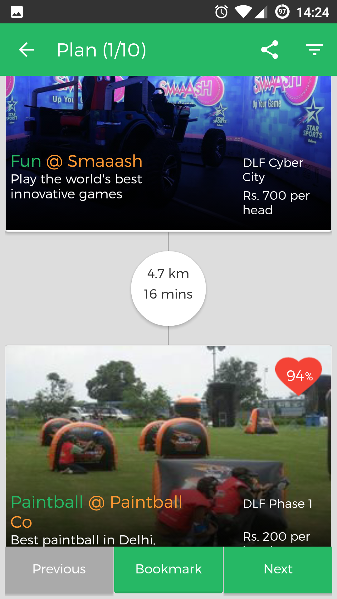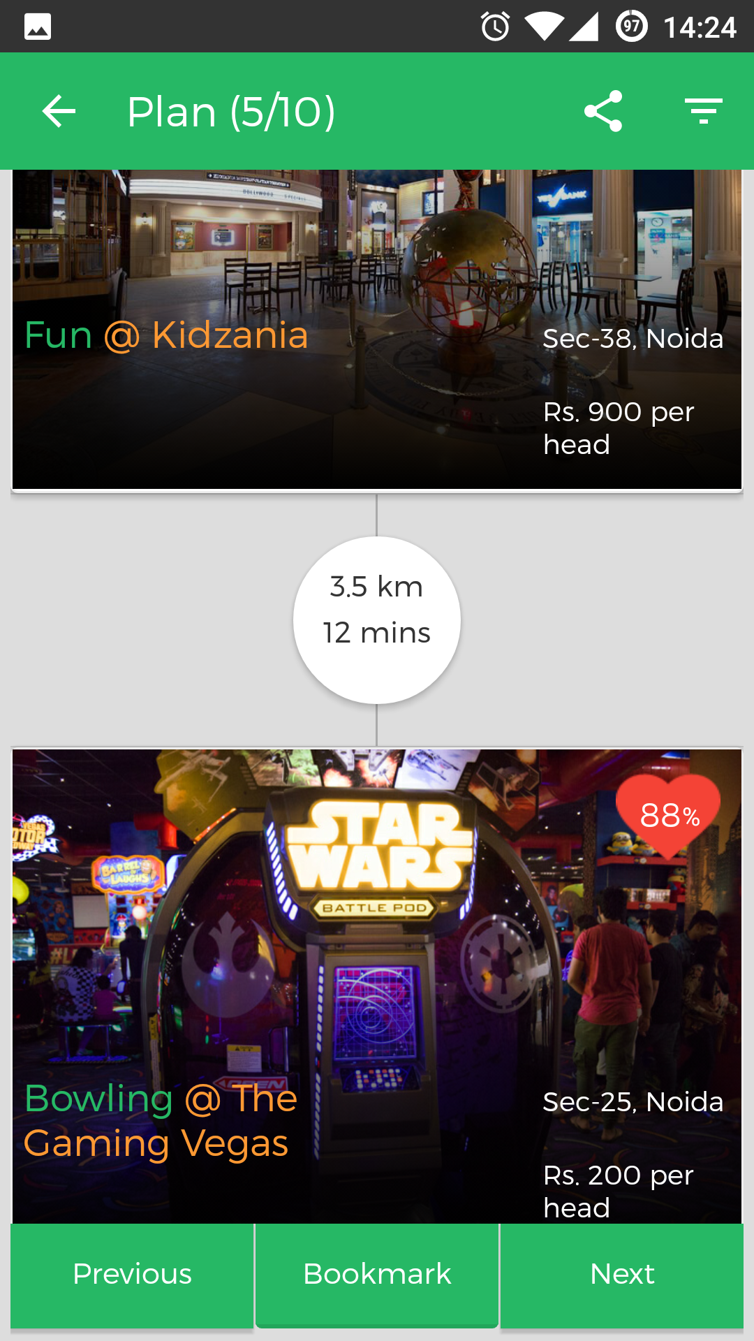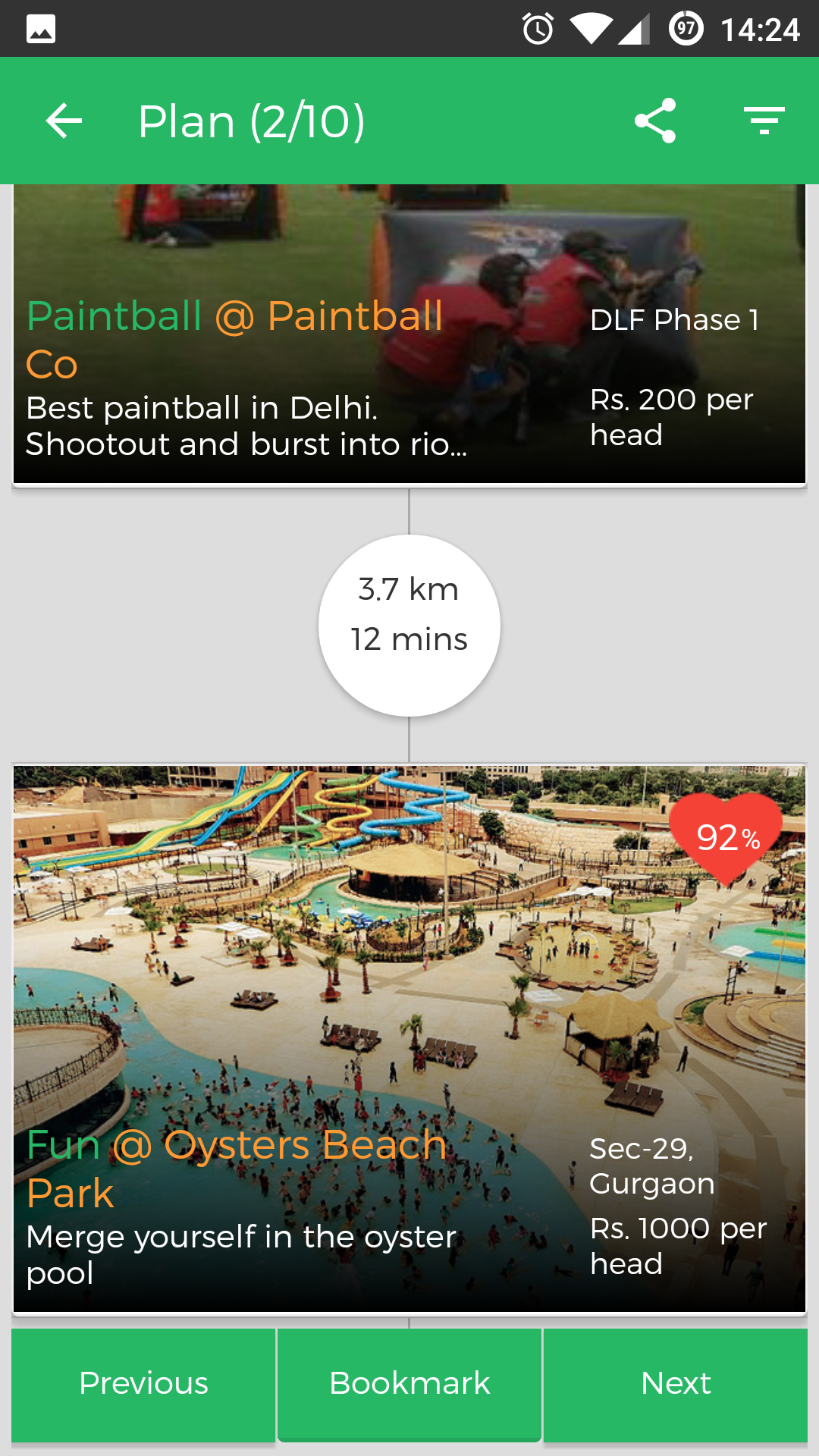 Planning a local outing which usually takes 50-55 minutes can now be done within 2 minutes as this product takes all the burden of taking the best possible combination of places according to distance/time/cost/user type and a lot more factor into consideration and gives you top outing suggestions. Giv… See more