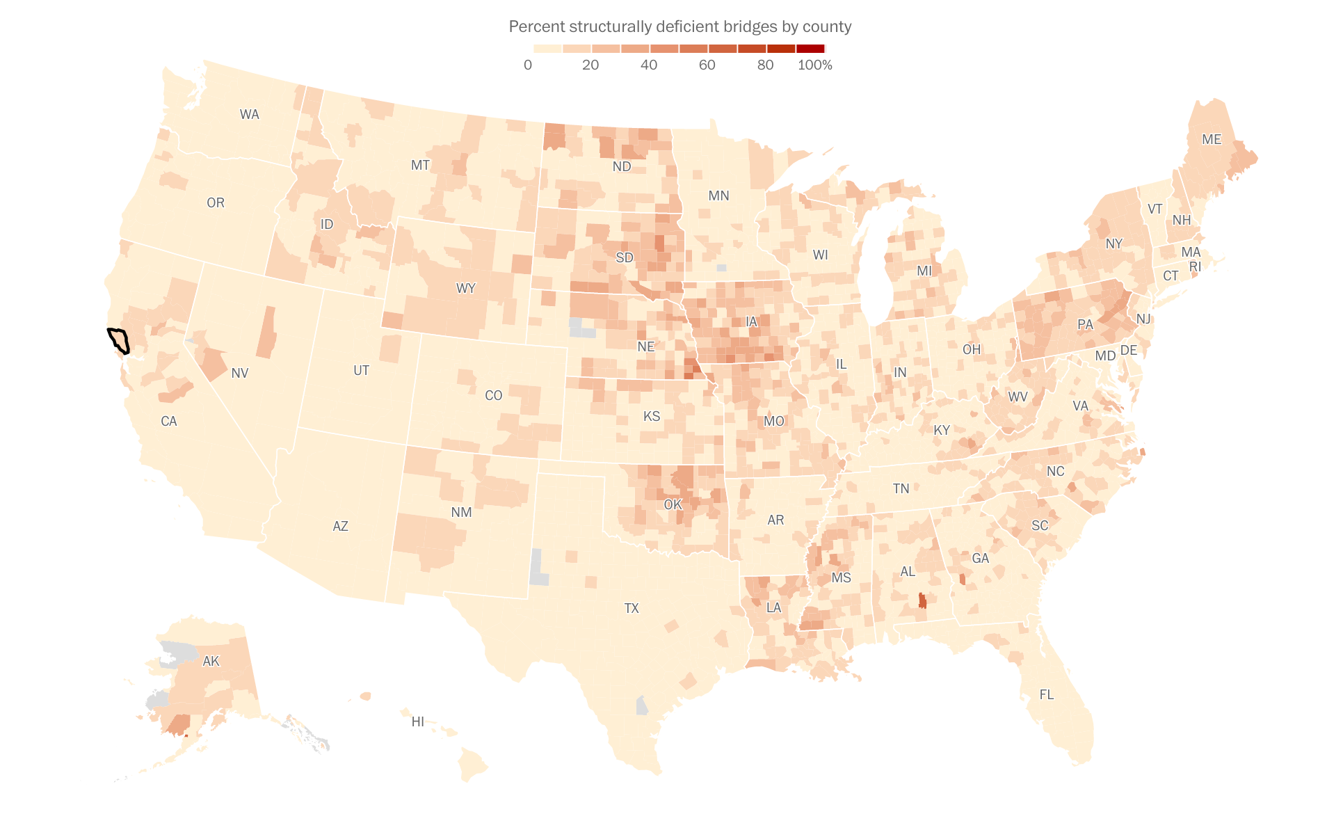 Structurally Deficient Bridges by The Washington Post