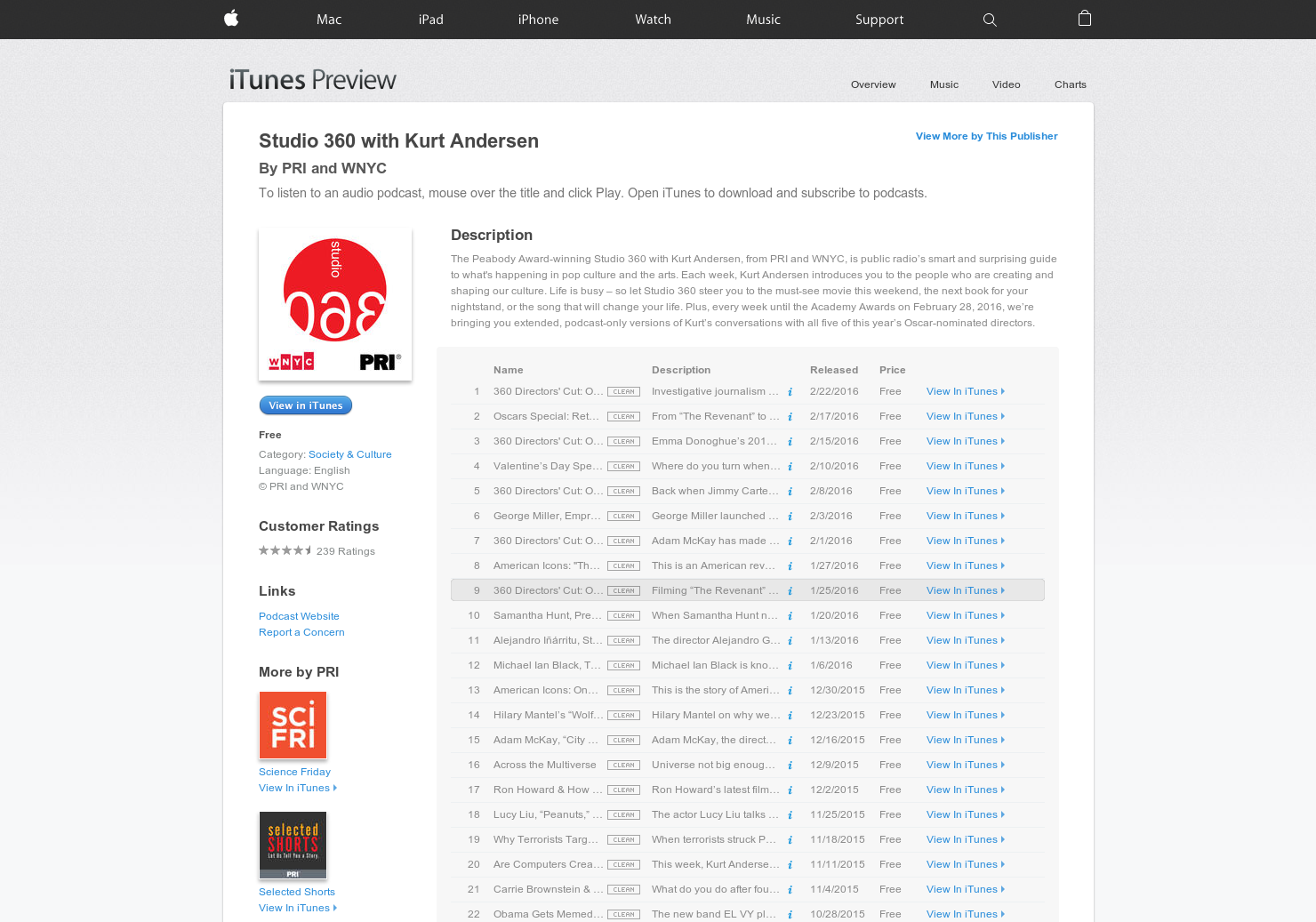 Studio 360 - Oscar-Nominee Alejandro Iñárritu, "The Revenant"