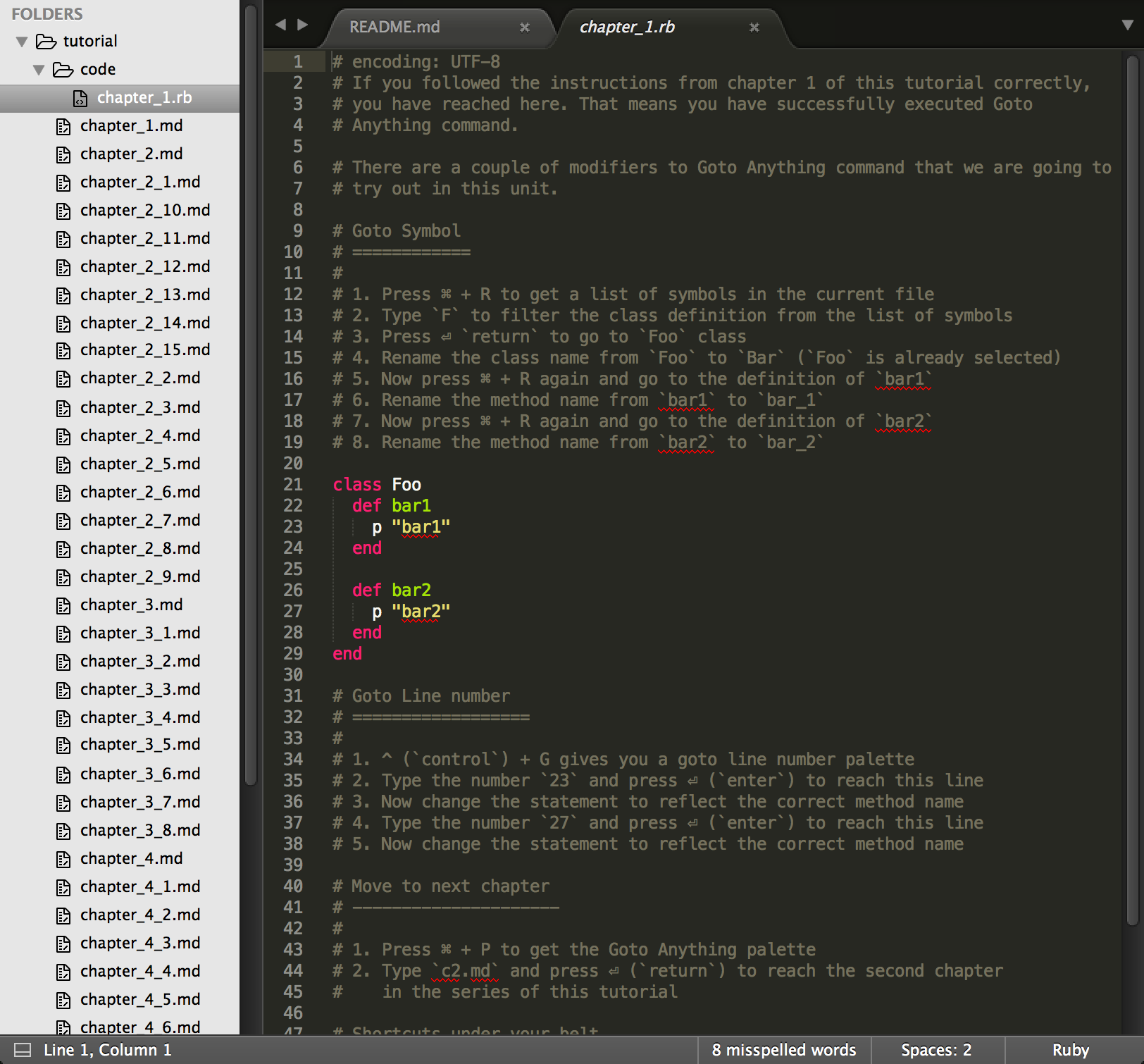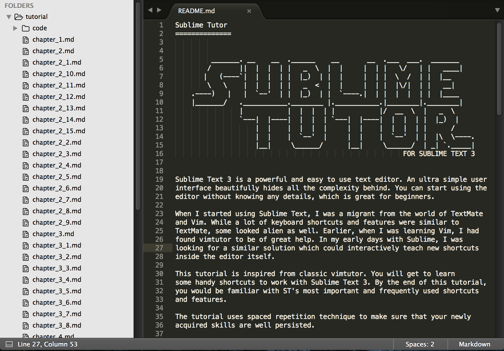 Love it @jaipandya! Reminds me of how VimTutor works (which worked great for me when learning Vim). It almost looks like you wrote a book inside of sublime. How long did it take to put this all together? How'd you get started?