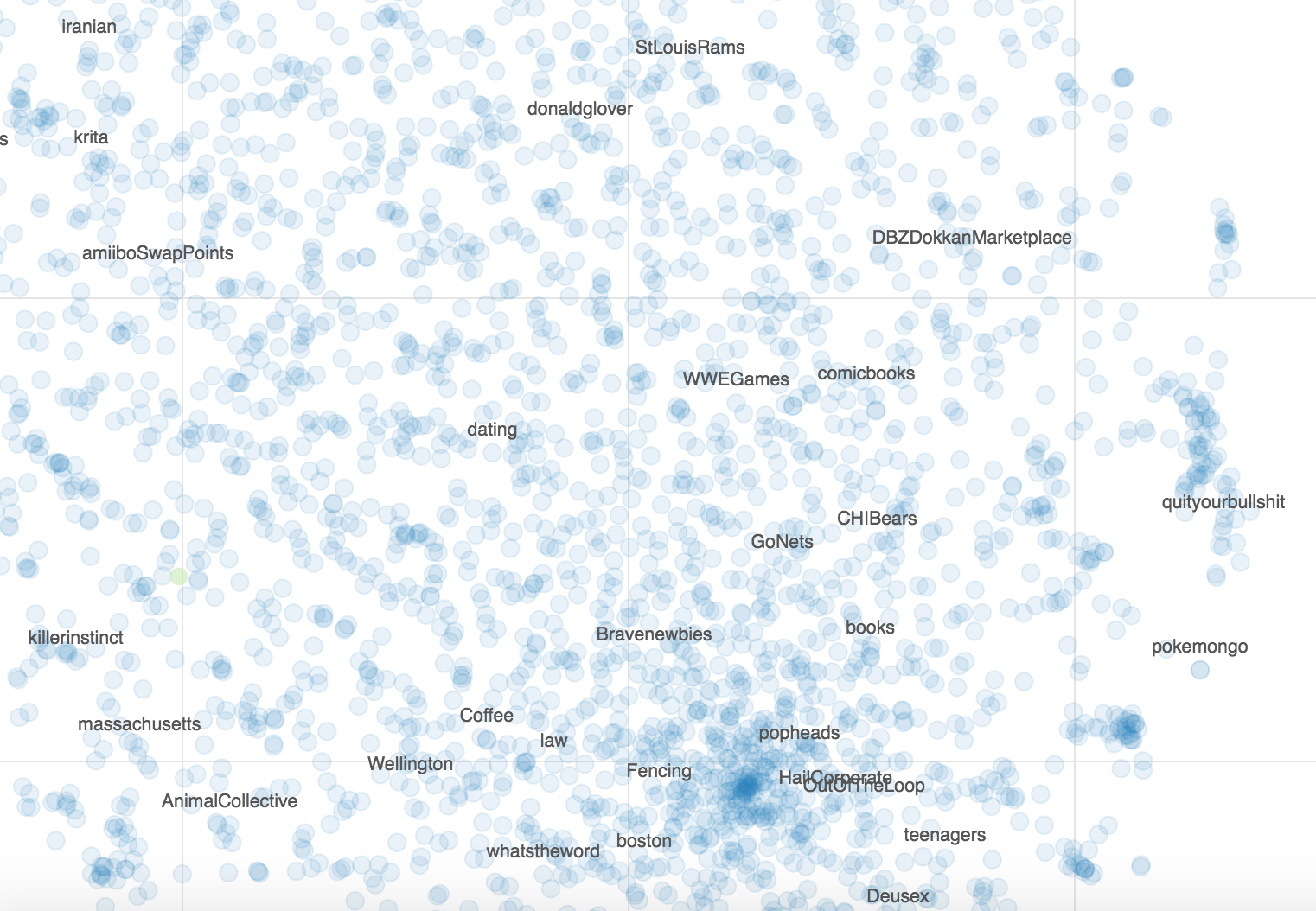 No measure of size and audience overlap. No ontology of topics to have some logical organization.