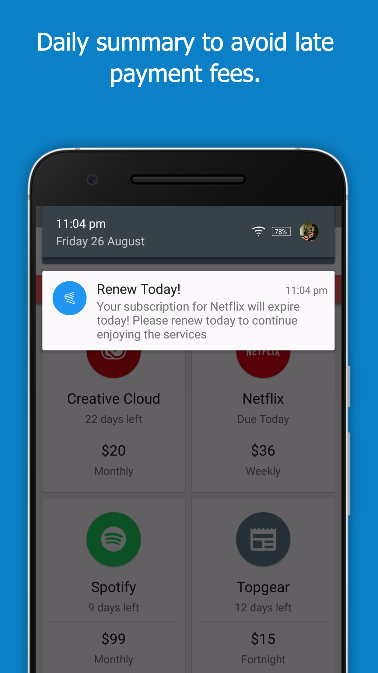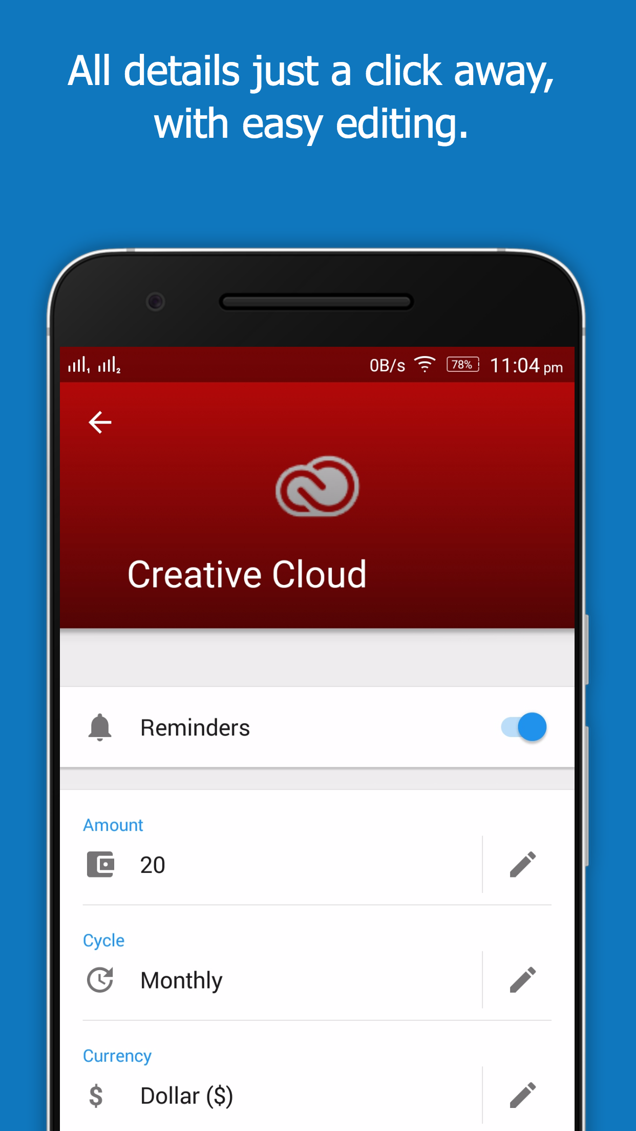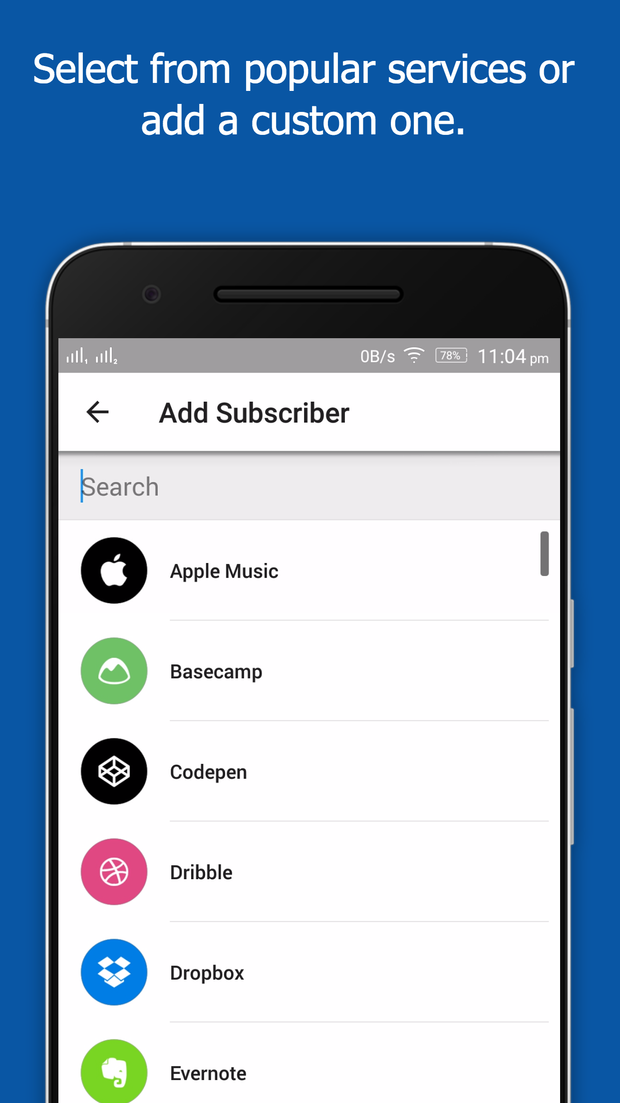 With a simple and intuitive UI, adding subscriptions is very easy. You can choose from the popular services or add a custom subscription. With monthly/weekly/bi-monthly and many o… See more