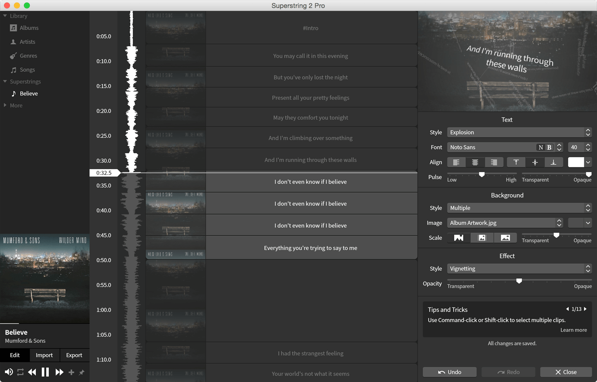 Superstring is a cool product by Sways.io that makes creating lyric videos easy. Designed to serve a single purpose, it does it extremely well. An easy to use UI, intuitive controls and quick export options - it has everything an amateur will need to output professional lyric videos like the ones seen on YouTube. Love it!