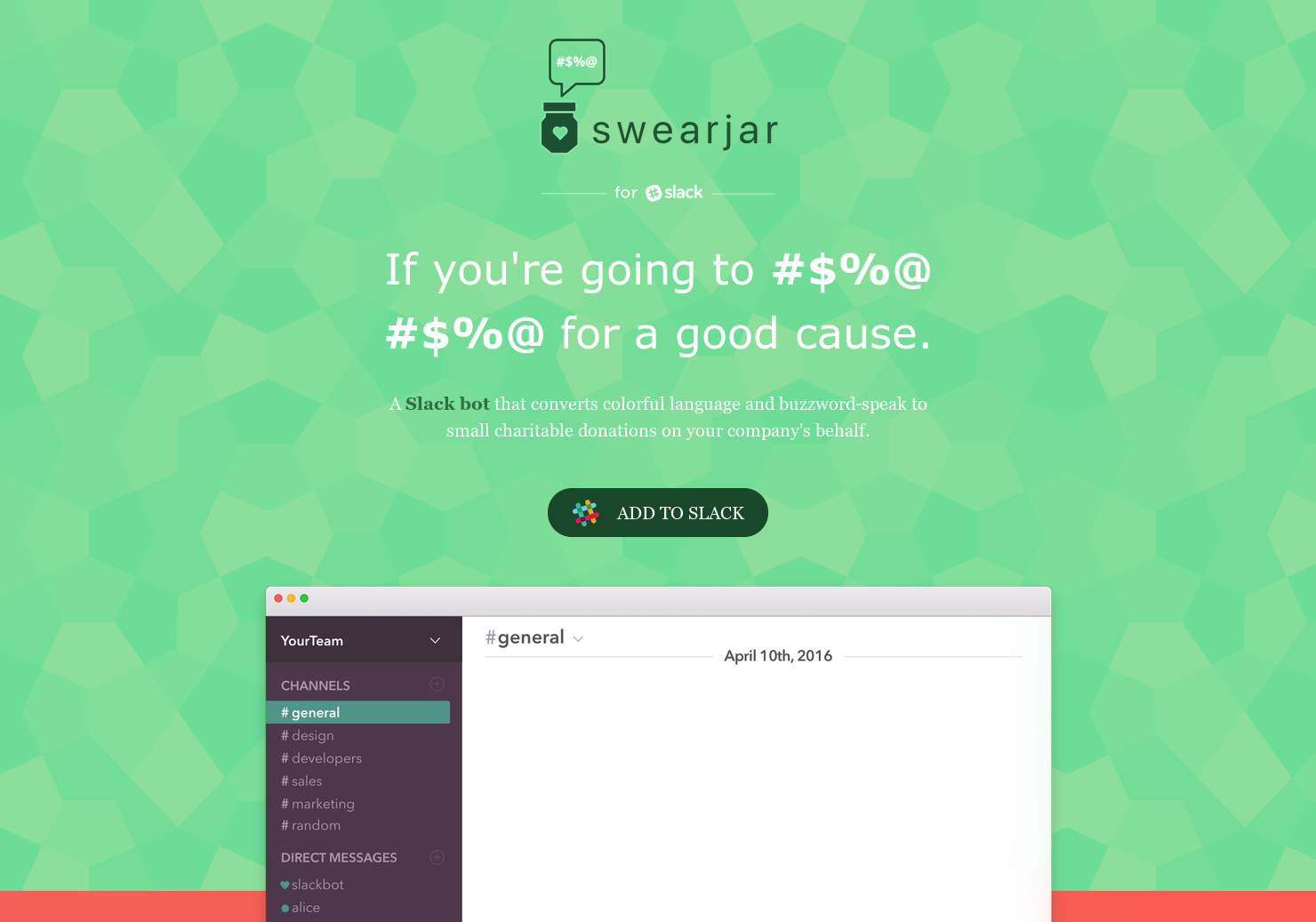 We are constantly looking for new ways to insert philanthropy and social good into people's everyday lives. Given how much of our life is spent chatting on Slack, we thought it would be a perfect place to do some good in an unexpected way. SwearJar pokes fun… See more