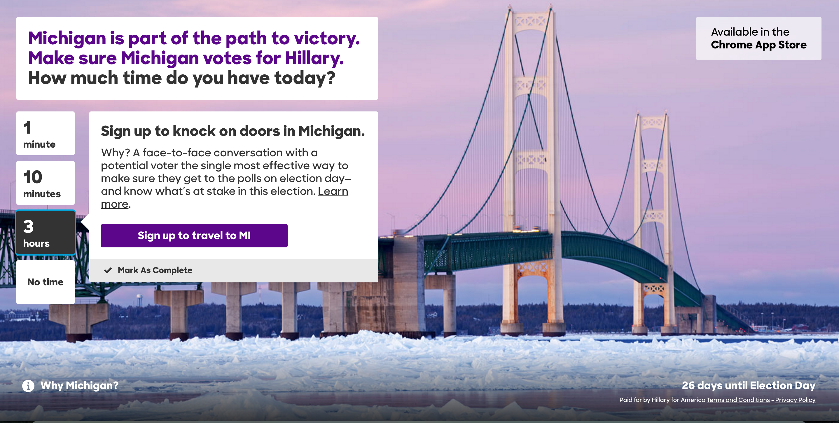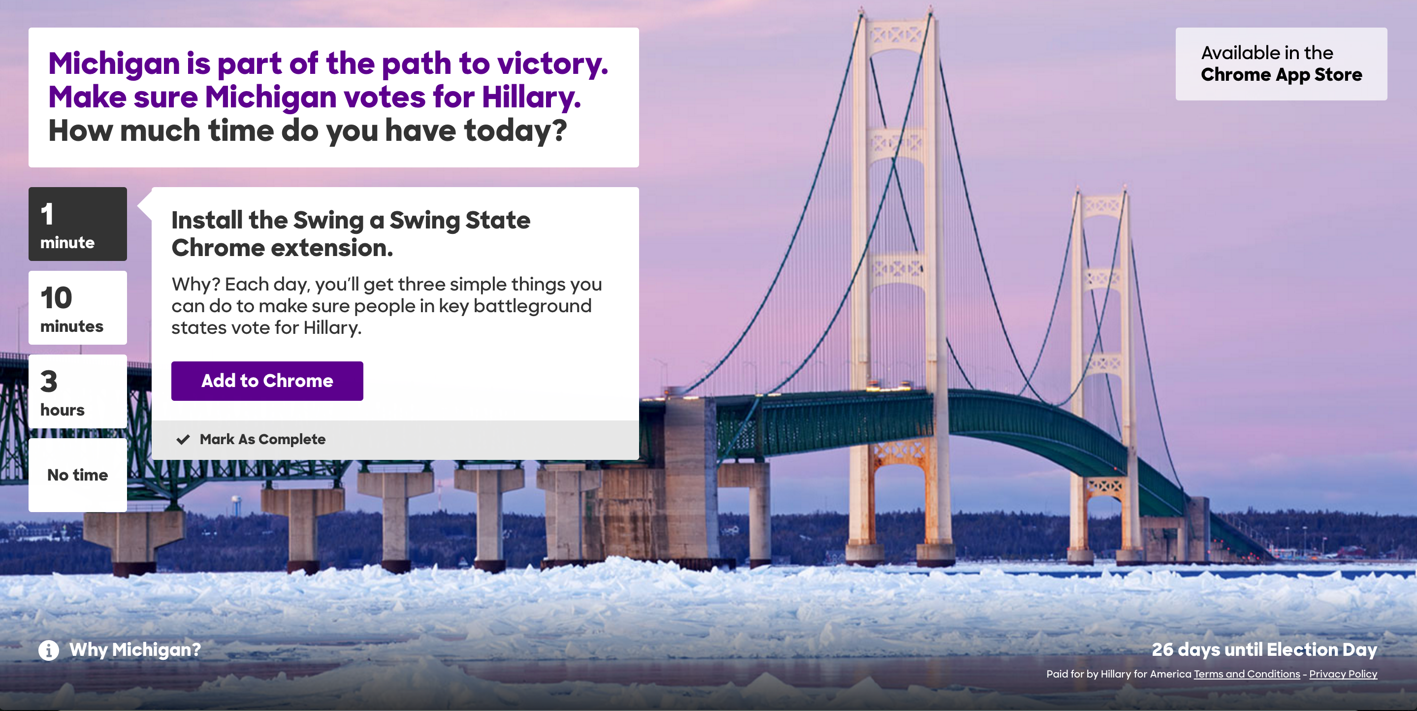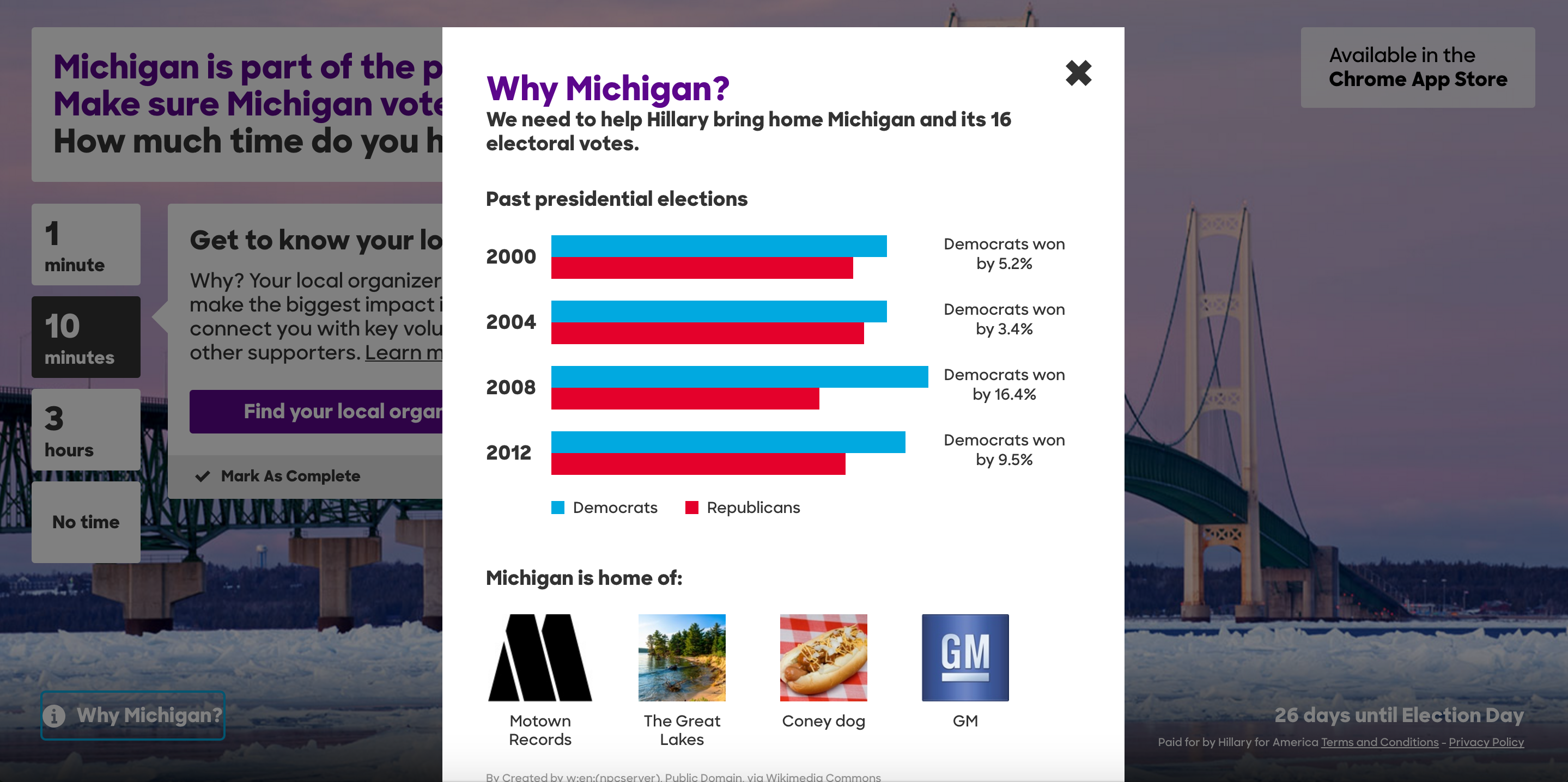 The Hillary For America team has been busy! I thought this Chrome extension was a clever way to take casual Hillary supporters and encourages them to get to work in swaying undecided votes in key swing states. We all know that the election comes down to these key states like Ohio, Michigan, Pennsylvania and Florida which are not solidly red or blue states. T… See more
