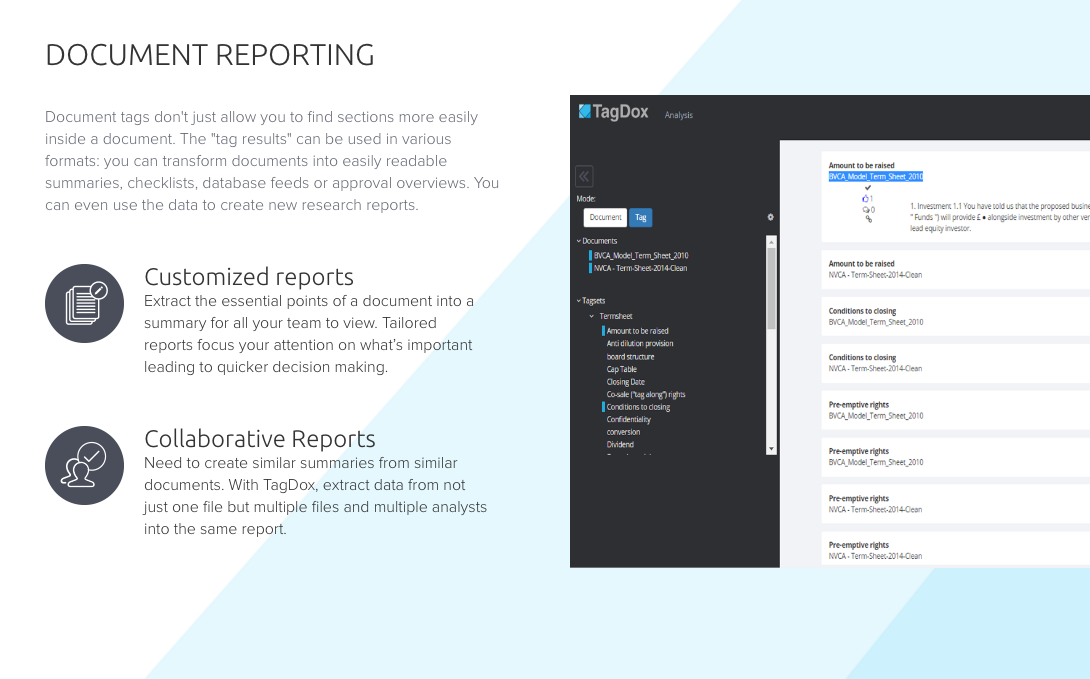 We have worked hard to make understanding documents such as legal-, financial contracts or academic papers much easier and faster using Machine learning, NLP and the wisdom of the crowd.