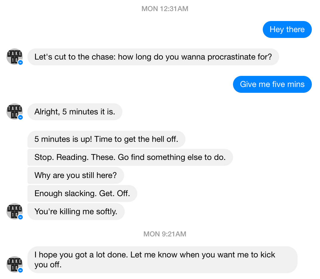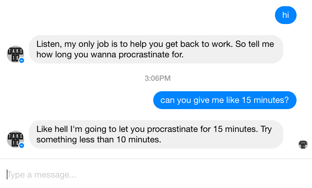 A Facebook bot to get you the hell back to work